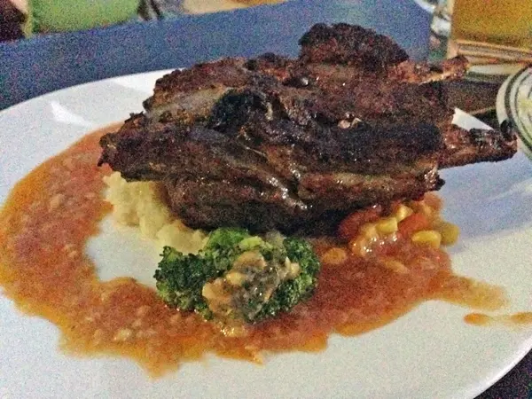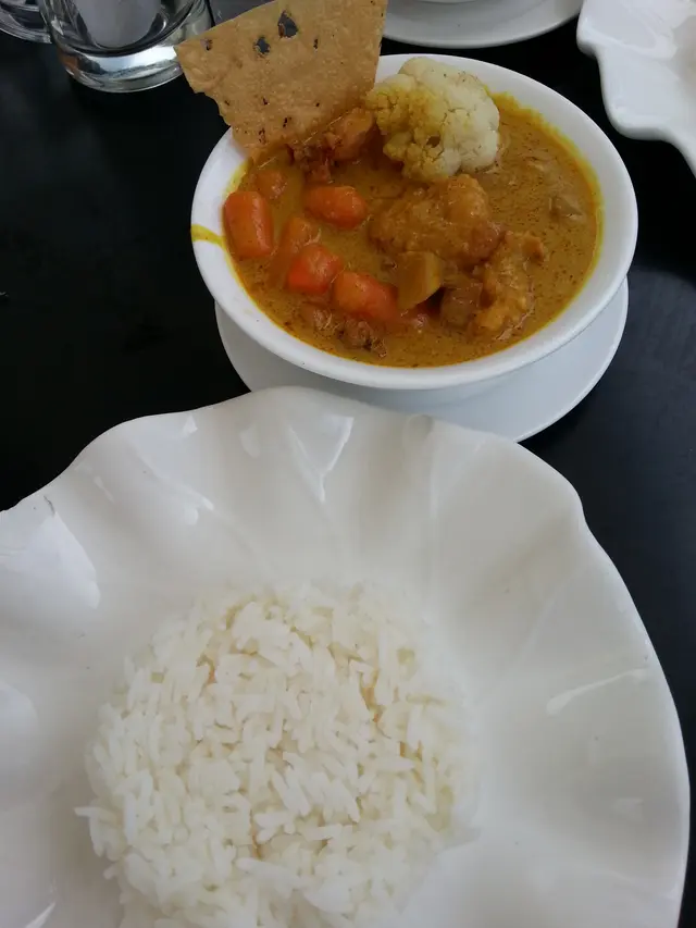 記得與梁先生遠走星加玻時,在克拉碼頭一家印度餐廳觀看對岸酒店和酒吧的燈光,還有觀景船來船往的河道。我們不禁歎息:百幾蚊的晚餐附上如此美景,香港何處尋?上週日突然收到whatsapp 邀約:今晚我在中環訂了枱與你共進晚餐。誠懇的邀請再加上“訂了枱” 三個字,我滿心歡喜連午飯都未食飽,六點就開始由IFC 與他漫步到中環3號碼頭。甫到達平臺花園,我們才發現:咦,點解唔系想像中的寧靜,環境浪漫的燭光晚餐餐廳!?花園似乎是公眾地方,大花圃旁邊圍滿了十數個外國人在聊天,露天茶座內9成是外國人在喝酒,格局跟士多裡擠滿沙灘枱凳無異。。餐廳隔離還有公廁。。。一開始,我倆倒真嚇了一驚。幸好,餐廳有預留最近海旁的幾張桌子給晚飯的客人,由於早到,我們順利拿了最佳位置。這裡的飲品種類較豐富,憑印象,啤酒1 pint 價格約$55,果汁/果茶一杯$30~(建議不用試,我的凍綠茶一點都不好喝),還有vodka 等其他酒類。餓了,先點兩份晚餐!第一份是$128 的燒烤雞肉配蠔意粉。意粉分量可少,翻熱度不足,但燒烤肉類很是香滑鮮嫩,沙爹味道久久不能消除,雞串必須大讚!見openrice上推薦食物是羊,我們都點了一份燒羊架餐跟薯蓉 ($168)。哇。。。呢個實在燒得剛剛好。落刀切開即傳來鮮味,羊架沒有一處燒得過老,帶少許紅色,咬落多汁,第一感覺係:無揀錯!薯蓉不過不失啦~原本以為百幾蚊只係買個尖沙咀的維港夜景,沒想到食物質素頗高!不過大食到死的我們再點了個咖喱魚柳配印度烤餅和炸蔬菜咖喱角作小吃。。這個價值$88 的咖喱餐又是超出我們的期望。烤餅酥香,沒有出油,咖喱椰奶味重,不辣,作醮醬真是一絕。只是炸魚柳粉厚,沉在底層有點失色。我們喝著Asahi (跟餐減$5)看香港夜景,文化中心,海上豪華遊輪,還有一個不太清楚看到的激光匯演。向來覺得啤酒偏苦的我到覺得他推介的這杯真係幾甜幾易入口。或許吃過這一頓精心安排的晚餐,心也甜了吧。