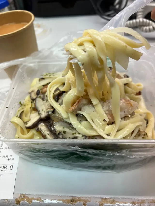 烤雞加左百里香好入味,而且有落左好多啡菇,成個意粉更香,係略嫌個忌廉汁比較稀,意粉淋咗少少,好易斷,但坦白講收$36有此質素已經冇嘢好挑剔