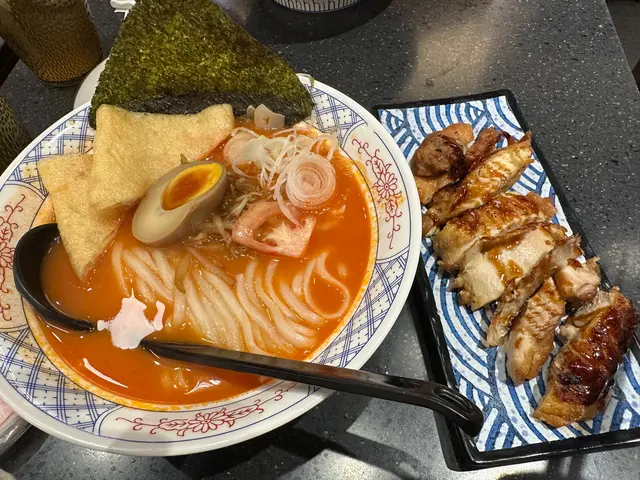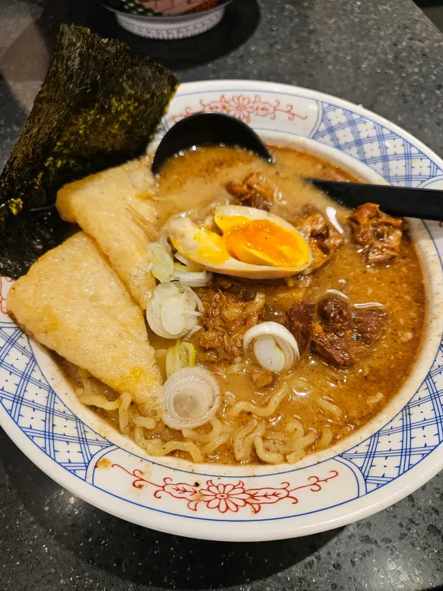 聽朋友講荃灣近福來邨果邊有間隱世高質日本餐廳,lunch 時間去食,大排長龍,平日lunch set幾抵食,50幾-80蚊連飲品,luch set menu有拉麵,烏冬,壽司,炒飯等等,好多選擇😆餐廳坐位較迫,可能因為繁忙時間,要同人搭枱食飯⭐️黑蒜豬軟骨湯拉麵湯底有好濃郁既黑蒜味,有一塊紫菜,半隻流心蛋,2舊豆卜,幾舊豬軟骨,可惜主角豬軟骨吾夠淋,拉麵係普通果隻麵,正常水準,如果豬軟骨再淋d就perfect😂查看更多