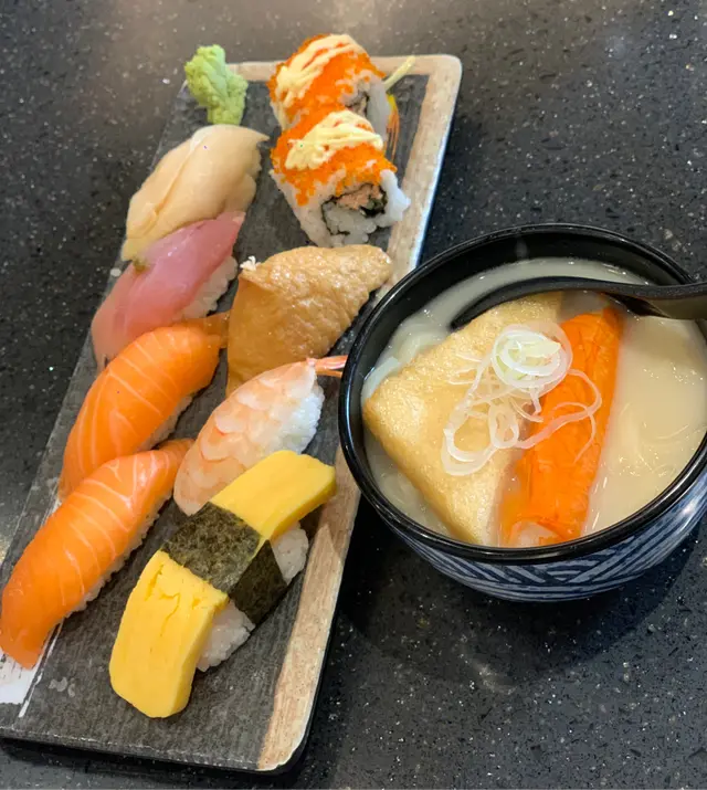 去食咗個下午茶 豐富到呢🤩超抵食叫左個「心壽司定食配迷你烏冬」都有唔同嘅種類🤗🍣🍣:三文魚 油甘魚 玉子 玻璃蝦 馬刀貝 腐皮 卷物雖然係迷你版 但其實都食到好飽口個烏冬好彈牙 仲有腐皮同蟹柳仔 個湯都好濃郁 俾我清晒呢間啲嘢好足料 而且賣相都打得卡🤗算係咁上下想食個下午茶嘅話不妨過嚟試一試😄除咗壽司之外,仲有有好多熱食同鍋物類嘅有好多選擇💕下次想嘗試佢嘅牛肉壽喜鍋❤️‍🔥親嚟緊冬天熱食其實都幾吸引🤍🤍 快啲過嚟試吓!查看更多