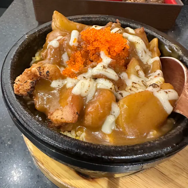 午飯時間可以去食,又平又抵食,質素仲要唔差。叫左個咖喱雞球蟹籽石鍋芝士飯,熱辣辣出曬煙,咖哩汁好香濃,蟹籽芝士🧀互相配合拉曬絲,份量夠曬飽,之後加杯熱奶茶完滿結束。算多人幫襯,包括學生哥打工仔,$50幾蚊既日式午餐,環境舒適。查看更多