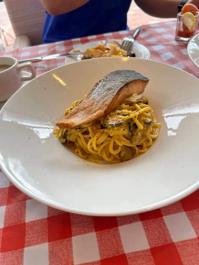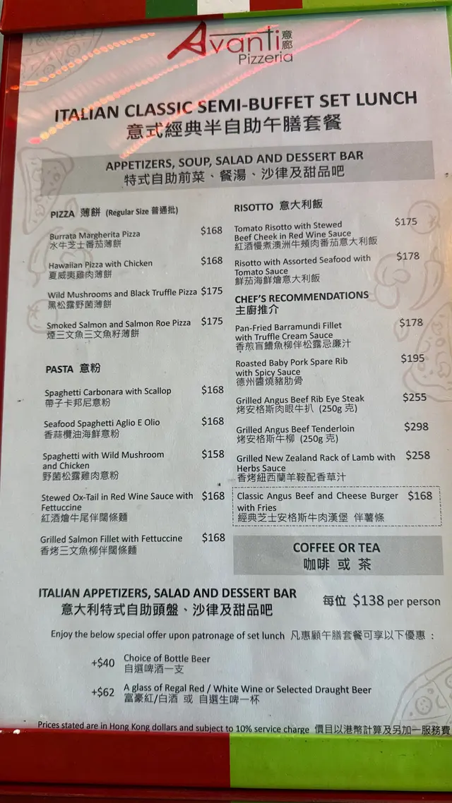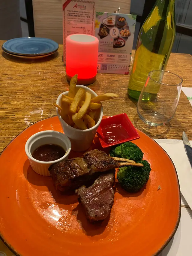 意廊嘅歐陸風裝潢一入門就好有格調,紅白格枱布加上柔和燈光,好有意大利小館感覺。環境乾淨寬敞,坐得舒服,氣氛悠閒,無論情侶晚餐定家庭聚會都啱。呢度叫主菜可以送半自助餐,超豐富! 半自助餐選擇都唔少,前菜沙律新鮮、湯品濃郁,甜品區有芝士蛋糕、朱古力撻同新鮮水果,補得好快。餐廳服務員主動而細心,會不時添水同收碟。今次叫左主菜牛扒同羊鞍,外層香脆帶焦香,內裡粉嫩多汁,肉香濃郁、油花分布平均,切開時肉汁滲出,香氣撲鼻!配上店家特製牛汁,鹹香中帶微甜,提升咗整體層次。蘆筍同車厘茄配得恰到好處,清爽解膩。食完主菜,再出去食埋生果同甜品,大滿足!整體體驗好滿意,食物質素、環境同服務都超出預期,屬於「會想再回頭」嘅那種餐廳。…查看更多