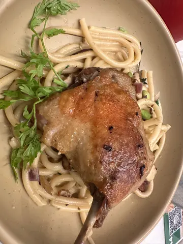呢排同同事多左嚟呢边食午餐🍱而且呢间餐厅性价比算高今次我叫左呢个油鸭髀圆意粉只鸭脾因为系煎香,所以上碟好香鸭脾味意粉好有咬感,所以食落好夹下次一定要再叫。唔使食死一款…查看更多