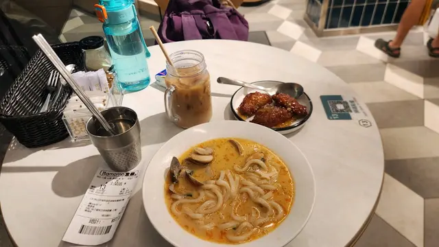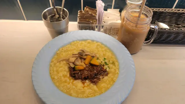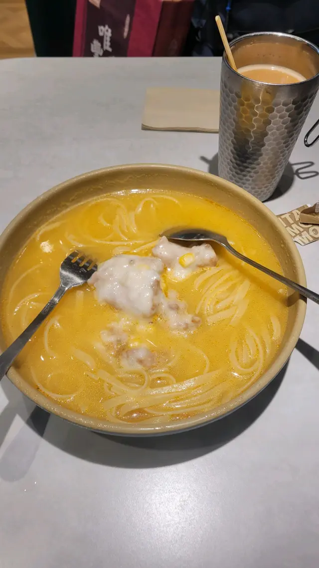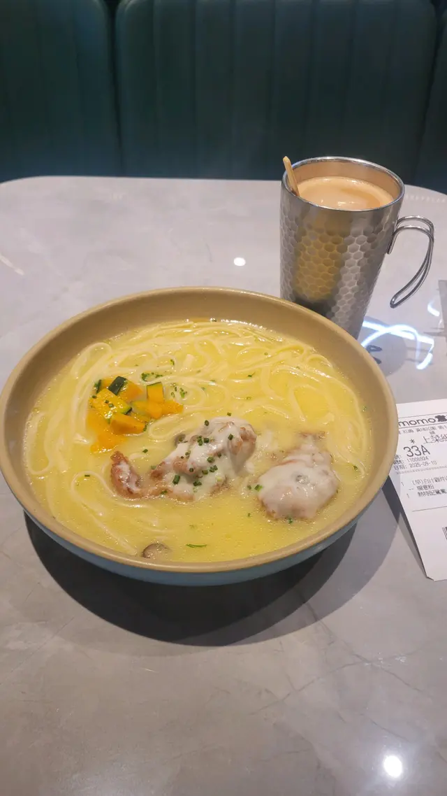 白汁雞件湯扁意粉 熱鴛鴦