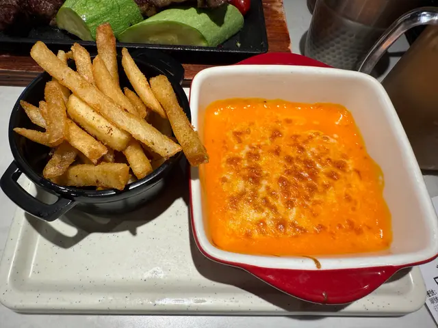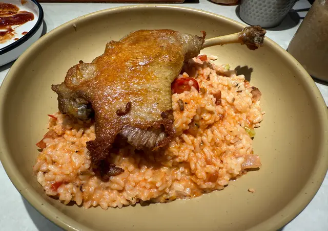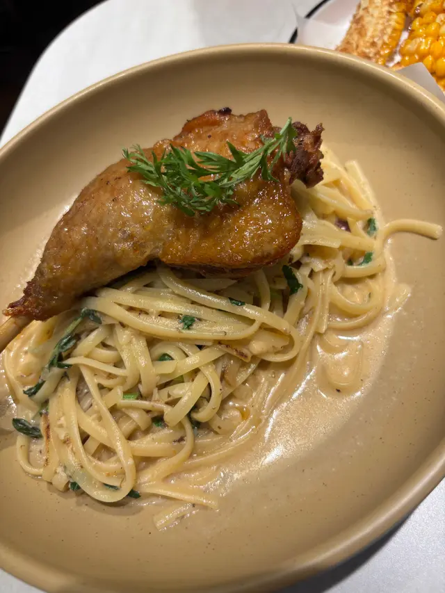 見佢新開,所以入去試吓,又係用盡晒空間,座到好埋,真係想同女友傾心事都會俾隔離枱聽到果啲。叫咗個T骨牛扒,同法式油封鴨鮮茄忌廉意大利飯,同二樣小食。T骨扒,大大份,牛肉淋,算ok收貨,但個攪笑位係~薯條未攪掂要後上😂😂。水牛城雞翼(小食),味道ok,皮炸到脆口,收貨。半溶芝士薯條~未索油,好鬼油,半溶芝士一般。到呢個名水蛇春咁長~等左我35分鐘,油封鴨肉質好淋,無乜味道,個飯話茄汁忌廉意大利飯,我食到係係茄汁撈白飯似啲。係咪時間關係?普通白飯當意大利飯?仲要等35分鐘。埋單二佰幾蚊,以價錢計係可以,但上菜速度真係有待改善。回頭度:5/10此終呢個價錢,扺過大x樂,主食以外,加十幾蚊又可以多個小食。…查看更多