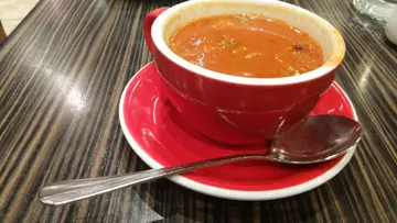 皮咬落仲粉粉地咁蘑菇汤就几香,吾错