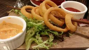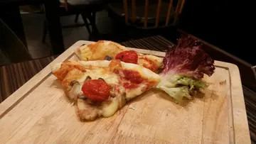 饼底香脆 馅料搭配恰到好处 只是洋葱生左D 虽然等左好耐 值题外话 唔算爆 但个pizza等左劲耐 多番催waiter跟进 奇怪地D人冇反应 最基本我地想知仲要等几耐呀 最后老公等到唔耐烦叫买单 waiter仲系零交流 但隔一阵先捧左个pizza出黎 早知唔催等洋葱熟左先