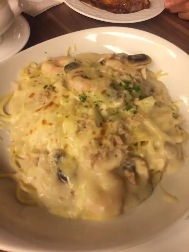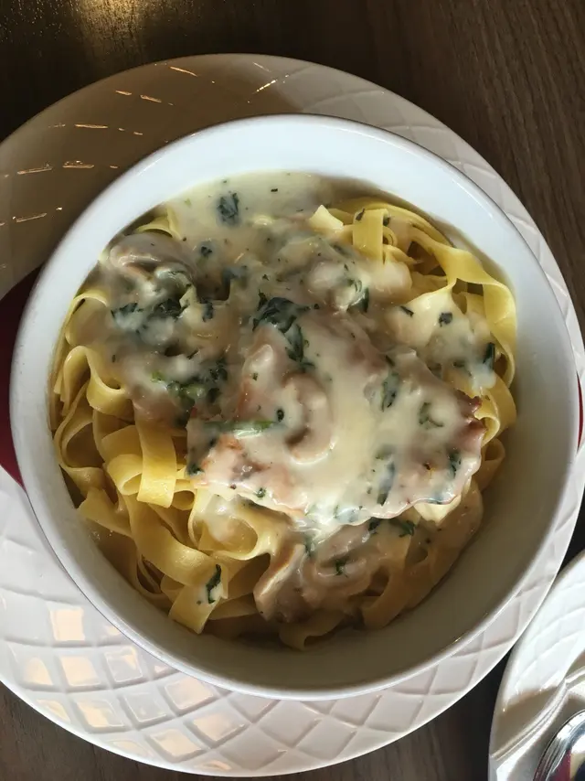一直以來,對意粉屋o既食物好有信心保證~當日去嘆個tea~好在有卡位坐~記得呢間意粉屋已經開業左起碼廿年~希望經典品牌可以繼續經營落去~;即使新嘗試o既菜式.都唔會令人失望,而且味道相當棒棒棒~~~今次肥仔tea,我揀左煙3文魚芝士意大利飯~個賣相真係好掂~又夠晒大份,好creamy!!又唔會好膩~岩岩好再配上酥皮菜湯,真係唔肥就難啦~~~~菜湯有貝殼粉,腰豆粒,材料相當豐富!!!環境很棒~很有情調~媽咪點O既菠菜忌廉龍利柳闊條麵~好大份~同lunch 一樣,無減料~so yummy!!…查看更多