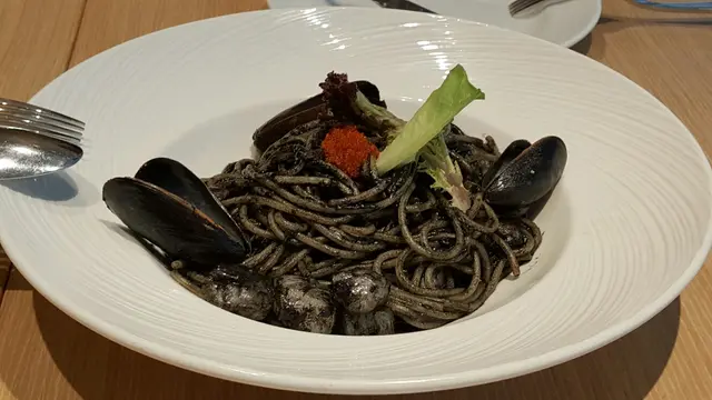 加拿大藍青口、帶子、羅勒墨魚汁意大利粉