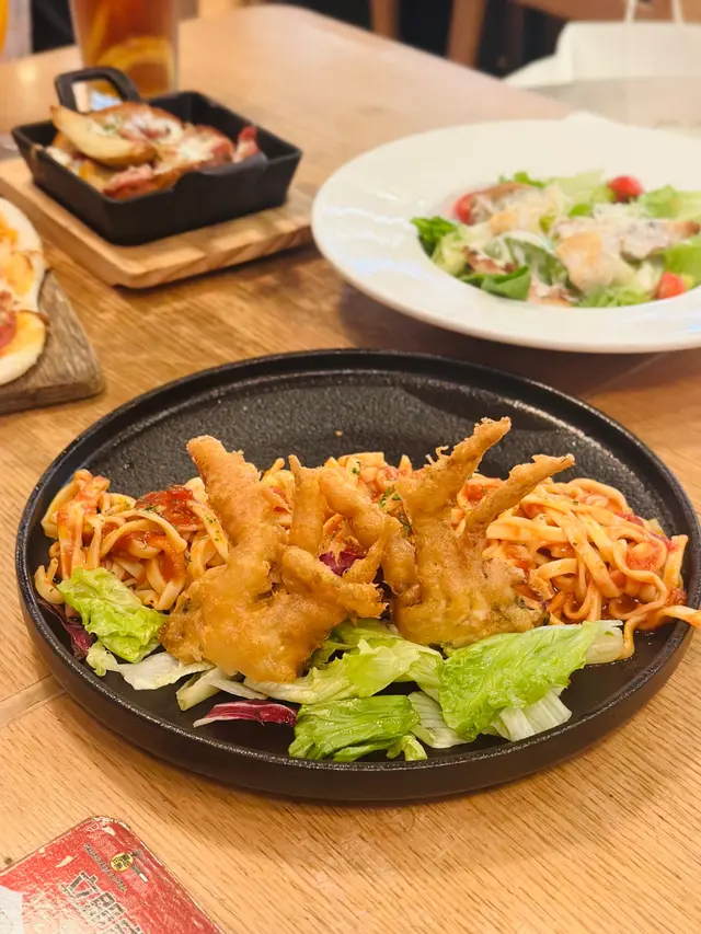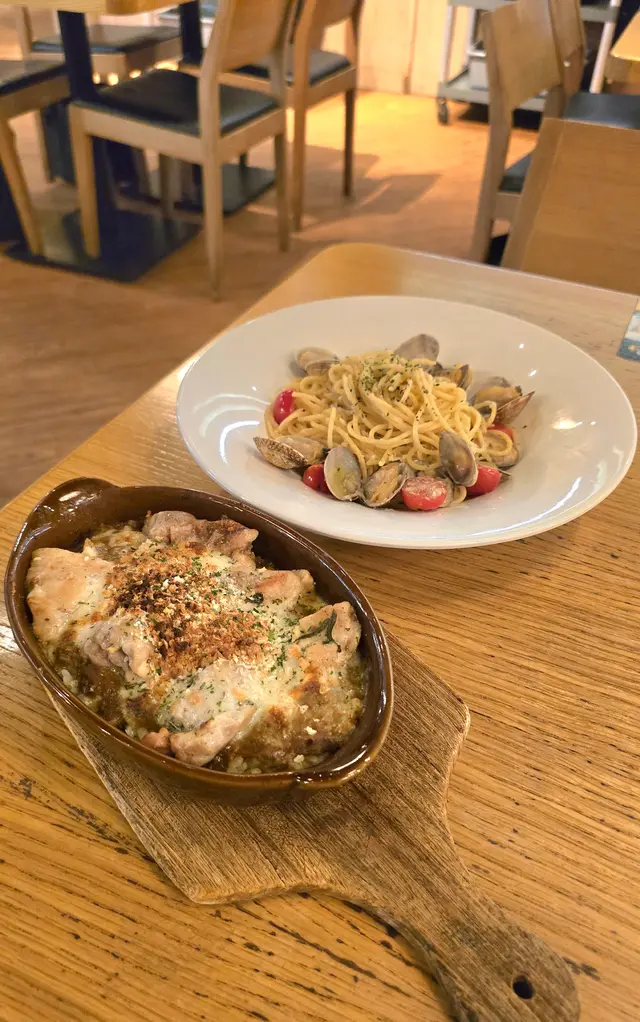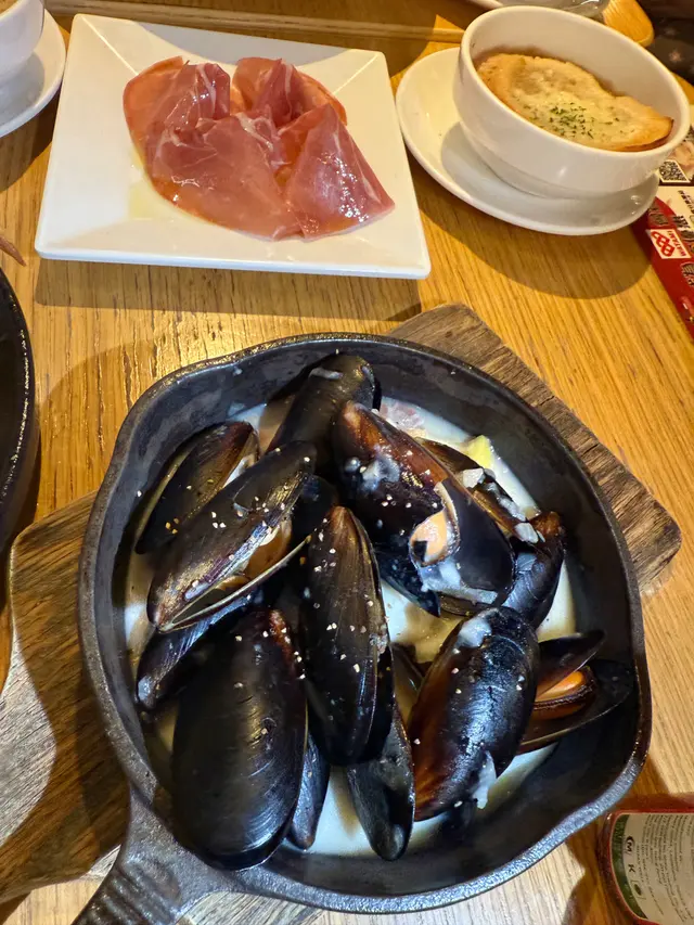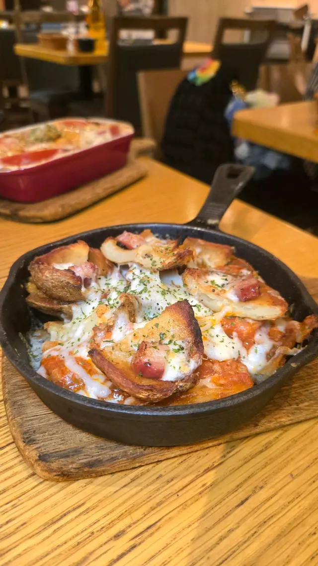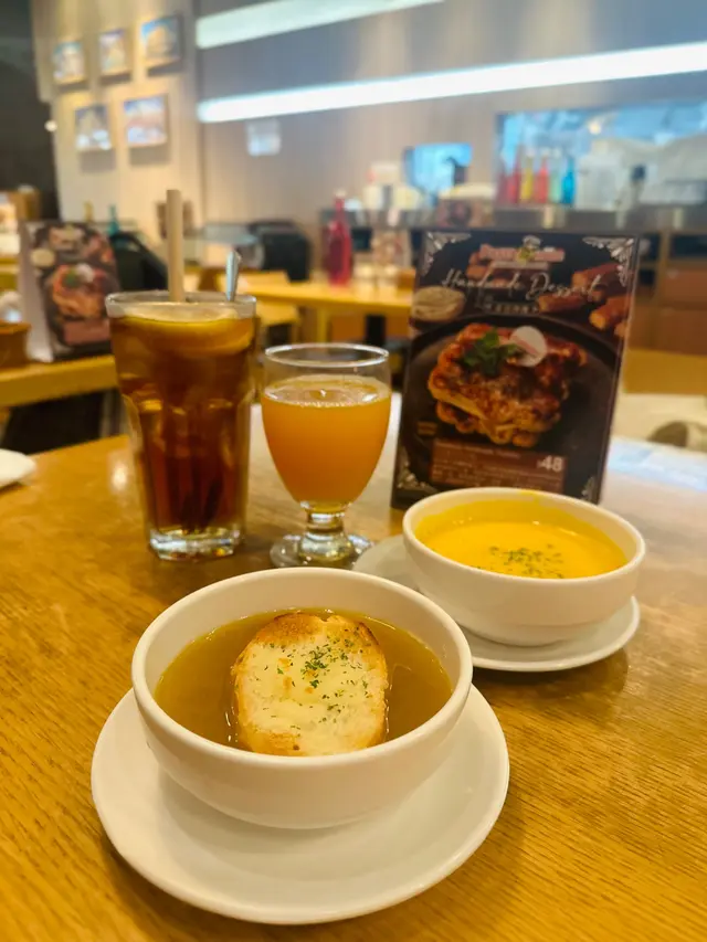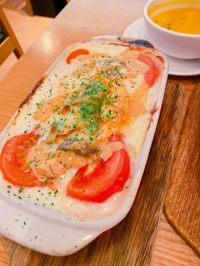 今晚逛商場看到有合意套餐,就此開餐。香濃南瓜忌廉湯~南瓜的香甜和忌廉的柔滑,組合成香濃綿滑且非常有質感的濃湯。法式芝士洋蔥湯~烘脆的法式麵包吸收清甜的洋蔥湯,美味可口。凱撒沙律~配以口感爽脆的多款新鮮蔬菜,加上鬆脆的麵包粒粒,車打芝士碎和美味的凱撒沙拉醬,是健康的好選擇! 蒜香白酒汁海蜆意粉~蜆肉飽滿又多汁,有蒜香與白酒加持的意粉,味道清新香馥。 咖哩芝士雞肉焗飯~鮮嫩多汁的雞肉,米飯吸收濃郁醇厚的咖喱及雞肉汁,經過烤焗,美味盡在其中。熱/冷日本抹茶牛奶~柔滑順喉,淡淡草香。提拉米蘇~軟綿綿的鮮奶油、帶濕潤的蛋糕片層層疊加,最上層灑上可可粉,香滑濃郁。二人套餐都很豐富,價錢也算實惠,三人行,還有多選一份薄餅、小食和甜品。照燒雞蛋黃醬pizza~蛋黃醬味道出奇地好,照燒雞肉很嫩滑,口感很滿意,十分推介。焗薯皮拼盤~拼盤包含有芝士煙肉、肉醬芝士和咖哩芝士三款口味,味道鹹香濃郁,將焗薯皮輕輕一拉,拉絲不斷,薯皮焗烤後形成一層誘人的焦香外皮,香脆味美。梳乎厘芝士蛋糕~梳乎厘及芝士蛋糕的組合,口感超綿軟鬆化,芝味香濃。…查看更多