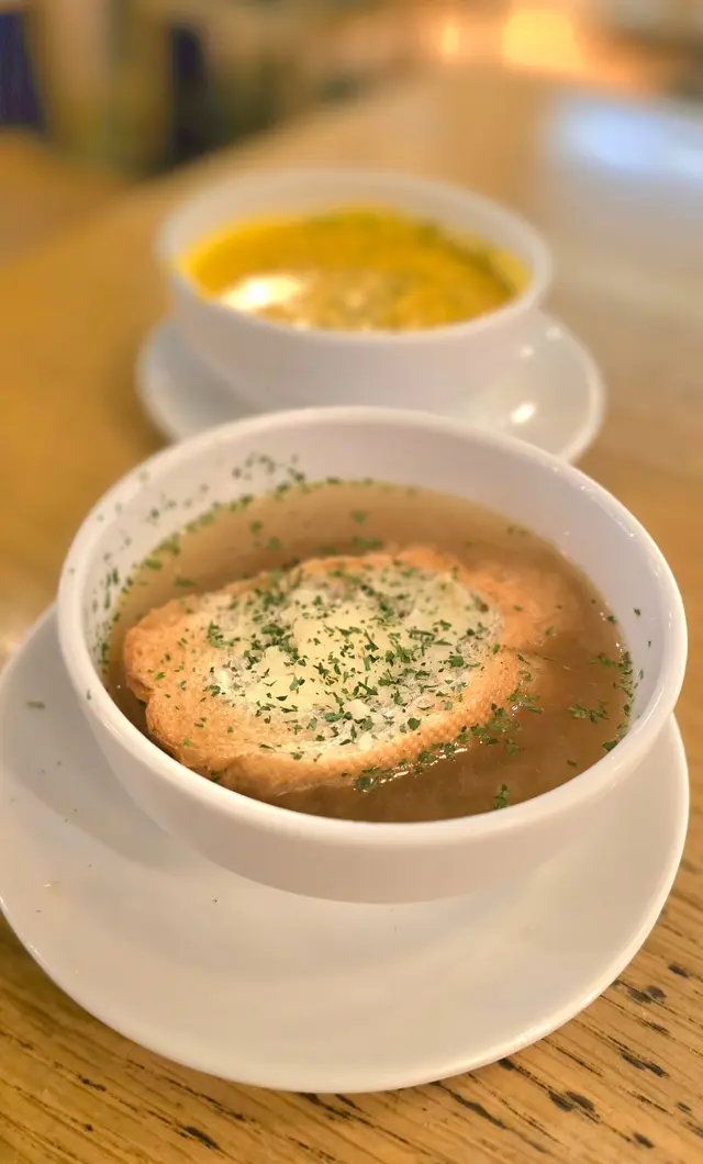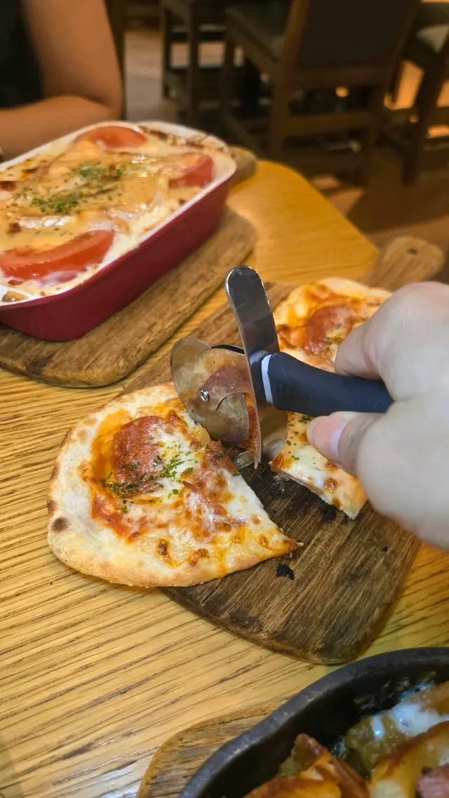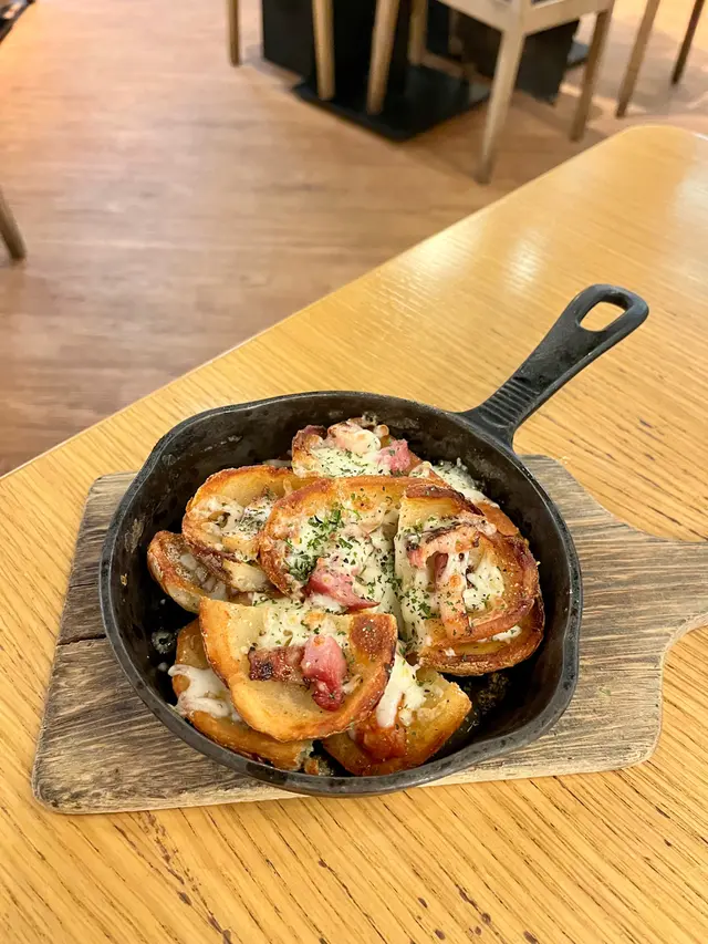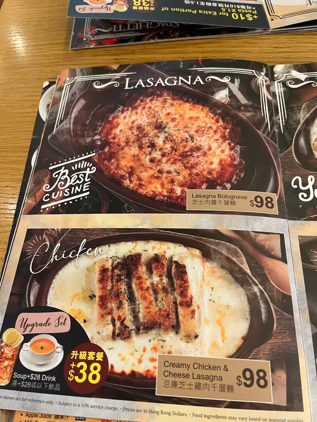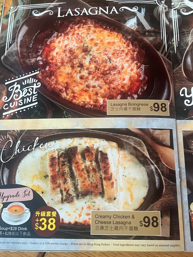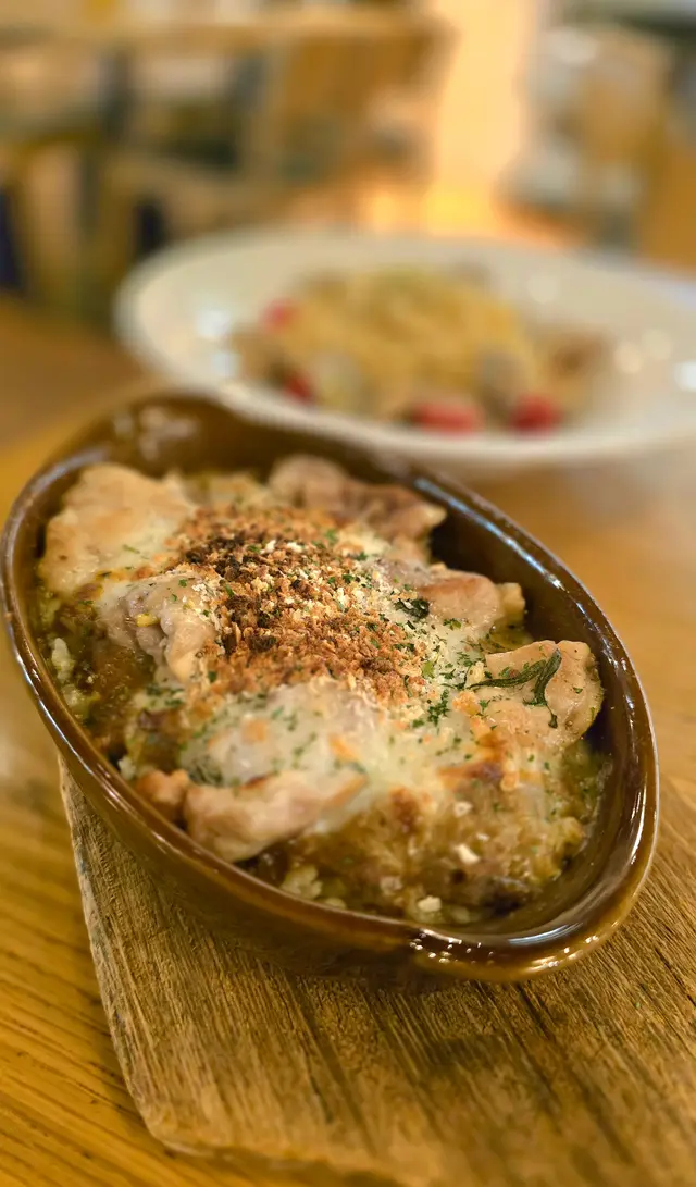 今晚逛商場看到有合意套餐,就此開餐。香濃南瓜忌廉湯~南瓜的香甜和忌廉的柔滑,組合成香濃綿滑且非常有質感的濃湯。法式芝士洋蔥湯~烘脆的法式麵包吸收清甜的洋蔥湯,美味可口。凱撒沙律~配以口感爽脆的多款新鮮蔬菜,加上鬆脆的麵包粒粒,車打芝士碎和美味的凱撒沙拉醬,是健康的好選擇! 蒜香白酒汁海蜆意粉~蜆肉飽滿又多汁,有蒜香與白酒加持的意粉,味道清新香馥。 咖哩芝士雞肉焗飯~鮮嫩多汁的雞肉,米飯吸收濃郁醇厚的咖喱及雞肉汁,經過烤焗,美味盡在其中。熱/冷日本抹茶牛奶~柔滑順喉,淡淡草香。提拉米蘇~軟綿綿的鮮奶油、帶濕潤的蛋糕片層層疊加,最上層灑上可可粉,香滑濃郁。二人套餐都很豐富,價錢也算實惠,三人行,還有多選一份薄餅、小食和甜品。照燒雞蛋黃醬pizza~蛋黃醬味道出奇地好,照燒雞肉很嫩滑,口感很滿意,十分推介。焗薯皮拼盤~拼盤包含有芝士煙肉、肉醬芝士和咖哩芝士三款口味,味道鹹香濃郁,將焗薯皮輕輕一拉,拉絲不斷,薯皮焗烤後形成一層誘人的焦香外皮,香脆味美。梳乎厘芝士蛋糕~梳乎厘及芝士蛋糕的組合,口感超綿軟鬆化,芝味香濃。…查看更多