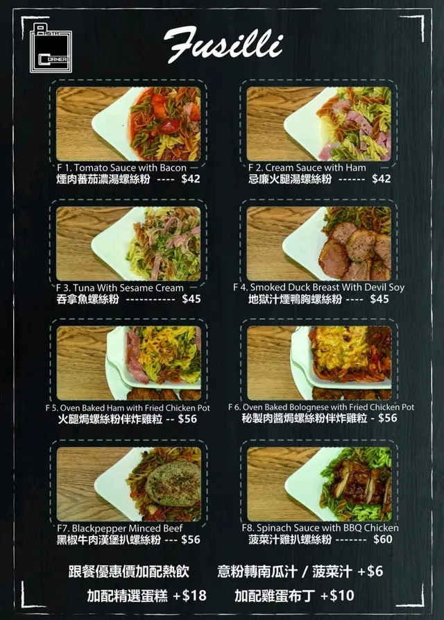 意粉角 (天水围) 网址: https://s.openrice.com/QrLS07cG800 地址: 香港天水圍天秀路8號天一商城1樓1020號舖 电话: +852 51628987