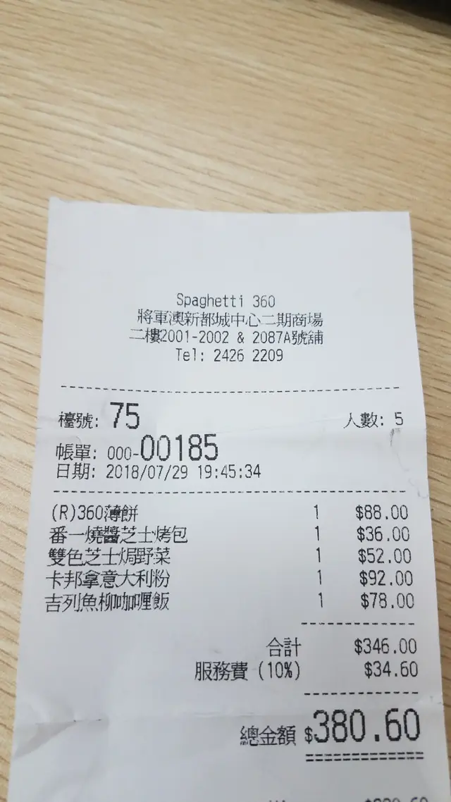 意粉 360 (将军澳) 网址: https://s.openrice.com/QrLS0bTe100 地址: 香港將軍澳貿業路8號新都城中心2期2樓2001號舖 电话: +852 24262209