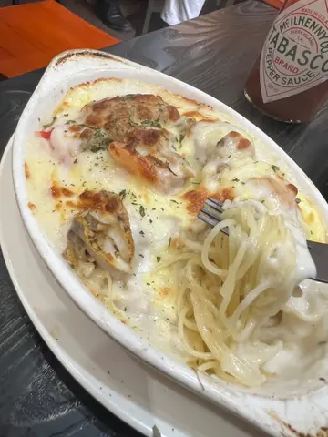 呢间餐厅主打平价焗饭/焗意粉。餐牌上面有九成餐点都系焗嘅。今日我哋叫左两款唔同嘅下午茶餐试吓。🍄🟫芝士焗黑椒汁蚬肉蘑菇螺丝粉明显见到粒粒蚬肉喺入面,料子都几多。黑椒味都算香,整体嚟讲几惹味。🐟芝士焗白汁吞拿鱼尖通粉对比起前者呢款就逊色少少。吞拿鱼唔算多,而且个汁都争咗少少味。两款个面都焗得好靓,但系其实都系同茶餐厅差不多😂并没有特别出色。…查看更多