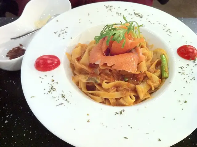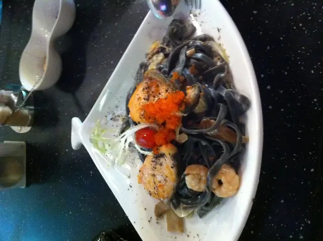 .....墨魚汁寬麵還留有點腥味,醬汁水欖味不太顯眼,酸酸辣辣的蕃茄味反而更醒胃