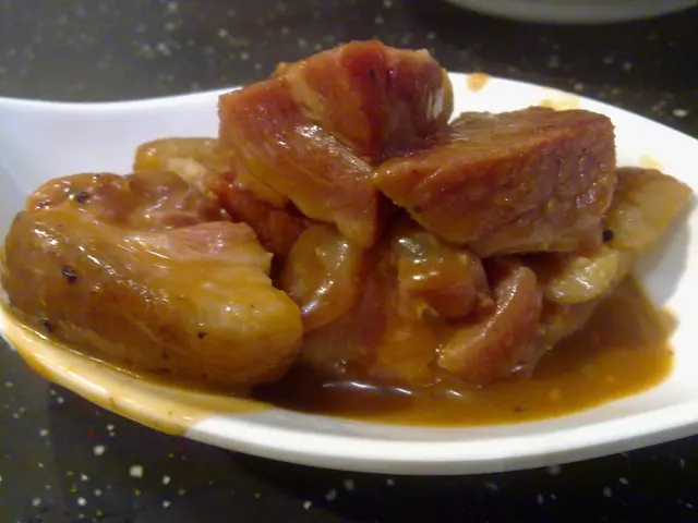 黑椒豬手粒啖啖肉!出水時間足,減少了很多過火的鹹味,可惜配上了那種茶記式磨菇汁,味道反而不及自家制的洋蔥水浸的好吃.