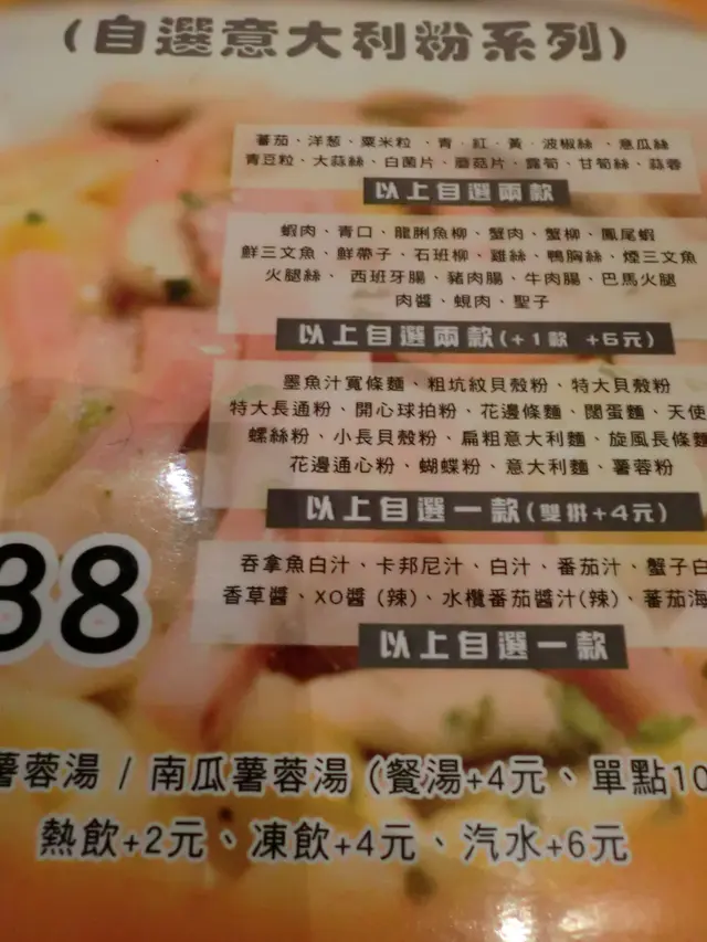 自選意粉可以以半價加點餐湯,點餐的紙像極車仔麵的點餸紙!......要配什麼,適隨尊便.