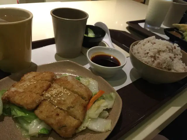 #爱家素食奶奶每逢初一、十五食斋,早排陪佢去淘大商场一间老牌街坊素食店开餐。𠮶度啲斋菜不含蛋/奶,款式多价钱实惠。悠乐汤粉($47) 湿湿地易入口,老火汤底可以俾奶奶当抗疫汤水饮用,健脾益胃。配料有扎肉、炸腐皮、蔬菜丸。嫌唔够喉,饮埋是日例汤:芥兰头浓汤唔太杰身,入口香滑。又或者加$5改热饮,大推椰浆咖啡!我要有饭落肚,叫咗一客香椿芙蓉包饭 ($48),系呢度嘅招牌菜式。芙蓉包有多层腐皮,杂菜粉丝做馅,食𠮶时点啲香椿汁,味道甘香,啱晒𩠌饭。食晚饭有得食纯素甜品,破例俾老人家食番杯。朱古力慕丝有浓郁可可味,奶奶𠮶杯蓝莓慕丝,底下有椰丝,味道天然。同奶奶一人一杯热饮,一个甜品,再闲话家常,都几写意!地址:九龙湾牛头角道77号淘大商场二期地下G242-245号舖…查看更多