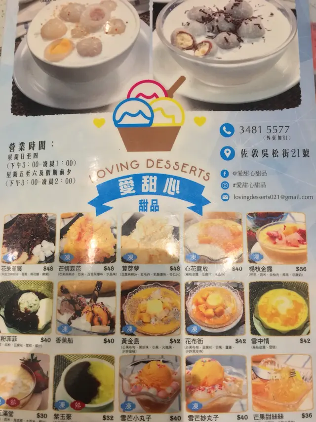 愛甜心甜品 (佐敦) 网址: https://s.openrice.com/QrLS036e800 地址: 香港佐敦吳松街21號地下 电话: +852 34815577