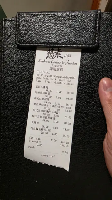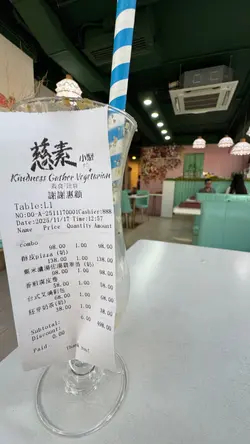 这次已经是第3次来这间餐厅, 主打新派素菜, 多款素菜不论外观味道口感都跟真肉很相似, 而且有中西日韩的款式, 适合不同客人口味 ☺️ 环境不大但光猛干净, 窗边挂左的小灯泡都满有情调 🫶🏻甜梅菜肉饼饭 $98这个每次都点, 跟平时的真•肉饼饭几乎无差别, 肉饼非常结实, 要挑剔就是口感上会多份粘性 😌 外观完全不特不吸引, 却相当有惊喜, 肉饼已经味道充足, 完全不需要额外加豉油。京都炸酱面 $98除了这款炸酱面, 也有韩式那款, 但平时比较少吃这道菜式, 所以就点来试试。面底幼细, 口感蛮弹牙, 有大量“肉丝”, 口感像极火腿 😆 酱汁甜甜辣辣很惹味。韩式红参鸡汤 $58椰汁雪耳无花果炖汤 $482款汤都超多配料, 就算没有肉, 汤品都依然鲜甜又滋润, 尤其雪耳无花果那款, 鸡汤就相对浓味一点, 2款都值得点来尝尝 😃日式芥末蝴蝶虾 $78虾肉炸得酥脆又弹牙, 当中真的有阵阵虾味, 配上甜酸芥末酱会多份清新口感 😚 仔细吃的话更会吃到有萝卜, 很特别。味道口感都亳无问题, 唯一问题是每件蝴蝶虾被斩成半, 有点单薄, 二合为一口感会大大增加!双色厚切多士 $58分别是椰芒和香芋味, 多士烘到外酥内软, 椰芒相对甜一些, 本身香芋味就不太甜, 加上一大堆杏仁粒, 甜味更被覆盖, 我自己偏爱香芋味多些。花生咸蛋汤圆 $28芝麻糊 $28汤圆够软糯, 姜汤够辣, 咸蛋做馅虽然特别, 不过始终都是芝麻汤圆深得我心 🙂↕️ 芝麻糊完全接受不了, 完全不甜之余口感都不是糊状, 同时略欠芝麻香, 想不到主菜这么好, 甜品却如此失败 🫣…Read More