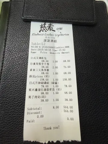 知道朋友喜欢食素食,特意带她嚟呢间「慈素小聚」试试。呢间「慈素小聚」位置颇好找,就在K11 购物艺术馆对面。餐厅虽然面积较小,但光顾嘅客人颇多,好彩还有1张小桌给我们用餐。珍贵首蓿芽手卷呢个手卷卖相似足日本手卷,用上首蓿芽、牛油果和素三文鱼组合而成,而外层嘅紫菜非常脆口,整个口感劲清新。北京片皮鸭似足真嘅北京片皮鸭模样,够晒吸睛。热腾腾嘅素鸭皮再配上青椒、红椒和青瓜,再加埋特制甜酱,口感劲丰富,食到停唔到口。日式芥辣蝴蝶虾素蝴蝶虾嘅外型似足真嘅蝴蝶虾,虾似系蒟蒻制成,口感颇为弹牙,而且外层酥脆,再沾上蜜糖芥末酱,更能丰富味蕾。琵琶豆腐呢个琵琶豆腐对比平日食开的略嫌硬了点,里面有蔬菜做馅,外皮略炸,形成外脆内软嘅感觉。素食串烧配秘制沙嗲酱呢款串烧包括有素鱼蛋、素牛丸和素牛肉,外型几可乱真,食落去真有点食肉丸嘅口感,点埋秘制沙嗲酱,够晒香浓味美。山楂梳打呢款特饮,买一送一,超级抵饮,味道酸酸甜甜,极为开胃。New York Cheese Cake脆口嘅饼底加上绵密嘅芝士,口感层次颇突出。…查看更多