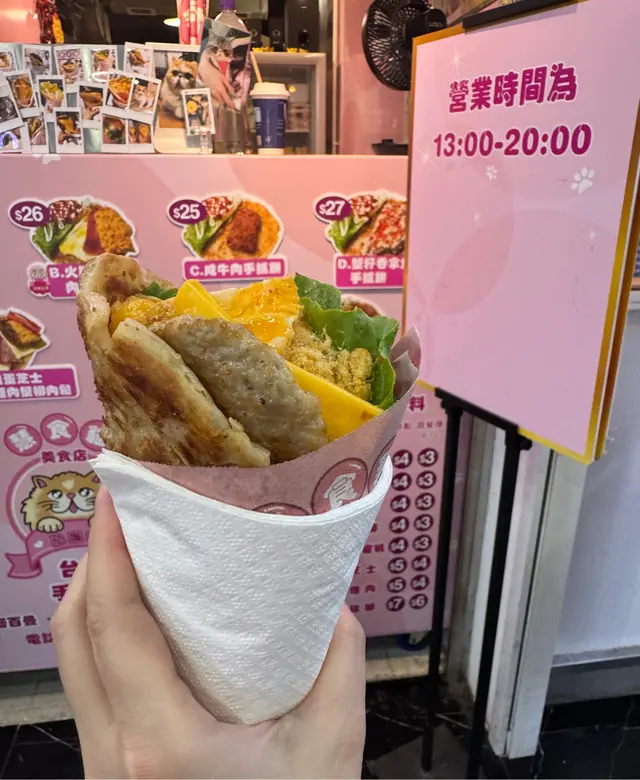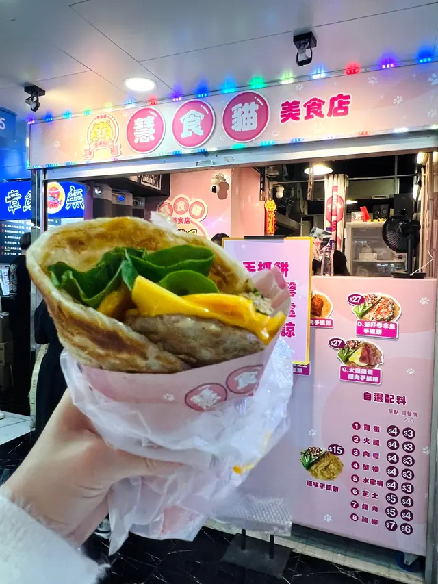旺角中心必食人氣手抓餅!手抓餅上手熱辣辣,煎得超香令人直流口水,餅皮鬆脆煙韌,內層咬落去有油香又唔會膩,最多人食嘅招牌火腿雞蛋肉鬆呢一個配搭一定唔會輸,蔬菜清爽新鮮有咬口,蛋同芝士夾埋一齊超流心勁香,放入口係暖暖嘅幸福感,肉鬆嘅份量好似唔使錢咁超多影之前唔小心跌咗一大堆,沙律醬好開胃,酸酸甜甜好惹味,啲醬又夠均勻,令成個手抓餅唔會好乾,一大啖咬落去真材實料勁多配料,個口要開到超級大先可以成個餅同時咬,火腿嘅味道唔係好好出,但火腿嘅味道唔會好鹹,夾埋落去啱啱好,成個餅好醫肚同勁好食,仲要咁平又足料,真材實料係呢呢個手抓餅嘅另外一個名!…查看更多
