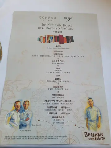 I was looking for somewhere to have a celebratory lunch and happened to see this lunch sets on a few selected days in November with guest chefs of Blend Brothers from Zeeland, The Netherlands. Price was HK$508 (4-course: 2 appetisers + 1 main + 1 dessert) and HK$488 (3-course: 1 appetiser + 1 main + 1 dessert).WELCOME APÉRITIF餐前酒Gin Basil Smash | Virgin Basil SmashWe went for the mocktail instead of the cocktail. It smelt very rich of mint and basil. Flavour was of the right degree of sweetness. There were some crispy Barley added on top. Yummy.There were three types of round bread, raisin, sour dough and baguette. They were served by a server at our table. They were still warm. The raisin bread was soft and rich in raisins. The sour dough had a very crispy surface. The other one was something not worth trying. Simply too hard.SALAD AND APPETIZER BAR前菜沙律吧There were a lot of choices at the salad and appetizer bar. Hot dishes included mussels and bacon quiche. Cold seafood included scallops, seared tuna, prawn, crab meat salad. Cold meat included beef, sausages. Cold cuts included smoked salmon, three types of ham with super sweet and juicy Italian melon. There were quite a number of different bowls of mixed salads, and also single types of veggies (asparagus, pumpkin, mushrooms, etc.). There was a type of soup which was tomato soup. I must have also missed some dishes here because there were too many to describe. Quality was reasonable and choices were plentiful. It was quite a great value for money salad and appetizer bar.This salad and appetiser bar is counted as one appetiser. It wasn't clear on the menu until the server told us so.ORDUTCH CROQUETTEbrioche | Holstein neck | Rubia Gallega fat | mizuna salad | shallot compote | smoked eel | Périgord black truffle牛油面包|霍尔斯坦牛颈肉|牛脂|水菜沙律|干葱酱 | 烟熏鳗鱼 | 黑松露酱A small piece of toast was topped by a piece of super crispy croquette with super smooth lava fat flowing out. It was topped by some mizuna salad and a server shaved some fresh black truffle slices on top. Texture wise it was perfect. Flavour wise the shallot compote was a bit strong. ORHAMACHI AND SCALLOP CRUDOJalapeños | yuzu油甘鱼带子刺身墨西哥辣椒|柚子Hamachi and scallop sashimi slices were placed nicely alternatively with yuzu and spicy Jalapeños in between. Some flower petals were added on top. The sashimi were very smooth. Flavour was light and appetising. This dish looked very nice.ORSOUPSPlease choose one from our selectionFrench Onion Soup | Bouillabaisse | Cream of Mushroom法式洋葱汤 | 海鲜汤 | 白菌忌廉汤MAINSBLACK CODsmoked eel mousseline | spinach | sea vegetables银鳕鱼烟熏鳗鱼慕丝|菠菜|海藻蔬菜ORBELCRISP BBQgreen asparagus | crispy ketchup | mousseline脆皮猪腩肉青芦笋|脆皮番茄酱|慕丝A big piece of pork belly was served with crispy skin. It was quite salty and the saltiness was balanced slightly by the crispy ketchup sauce, but it was still salty. It was accompanied by four fresh asparagus. Overall I found this dish too salty. ORROASTED U.S. BEEF SIRLOINasparagus | crispy onion慢烧美国西冷芦笋 | 香脆洋葱Portion was big. We asked for medium rare but it was slightly overcooked. Although there was no sauce just some spices, it was not too dry. It was tender and juicy. It was accompanied by a fresh asparagus and sweet carrot mash. PORNSTAR MARTINI 鸡尾酒almond crumble | pineapple tartare | mint julep granite杏仁金宝|菠萝他他|薄荷朱利酒冰沙There was only one dessert. Dessert was served like a cocktail glass. From top to bottom, it was mint julep granite, followed by pineapple tartare in the middle and bottomed by almond crumble. It smelt very good of pineapple! Texture-wise it was perfect because there were different layers and we could even eat some super crispy chocolate thin slices in between. The sweet & sour flavour balanced nicely with the chocolate crisps, and the flavour overall was very refreshing! Overall, it was a very outstanding dessert!Iced chocolates We both ordered iced chocolates with skimmed milk. It was not too sweet.Petite fours were four Dutch shoes made of white chocolate coats with honey and tea jelly fillings respectively. It looked super nice with green grass crumbles. Flavour wise only soso. But crumble base tasted better haha.In general, food was nice and we were both very full afterwards. Environment was very decent with high ceilings, bright and large windows overlooking tall buildings. There were lots of flowers inside. Tables were not so close to each other. We were seated at a corner and it was super private and quiet. Service was quite good. We had a great time here.…查看更多
