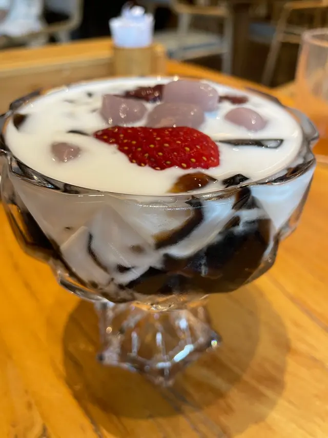 又不会过于浓烈 而是非常舒服的一份~~(少冰,半糖, 转鲜奶茶 +$5, 加奶盖 +$7)