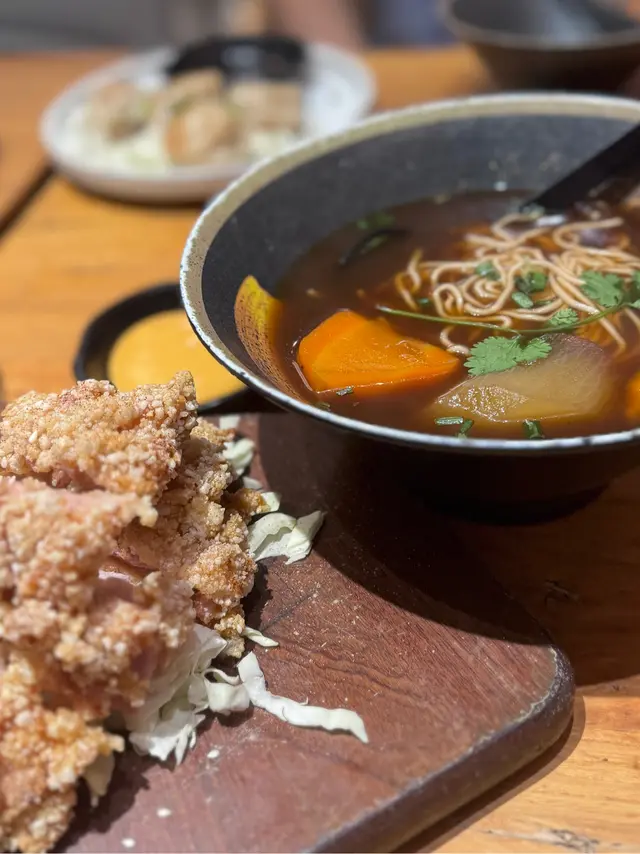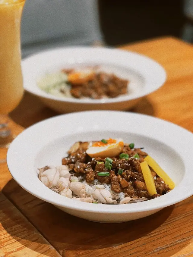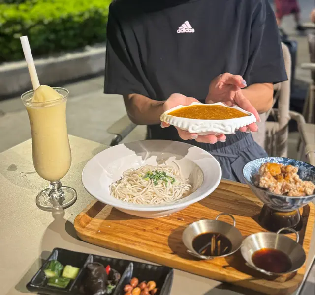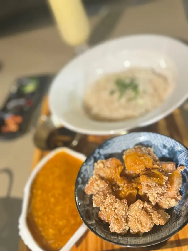 餐廳位於海濱長廊附近~寵物友善~適合帶著毛孩一齊用餐~啱晒將軍澳嘅養寵物街坊喺度食嘢不過當晚嘅用餐體驗有些小插曲:不少菜式已經售罄🥲我地最終點左1️⃣兩個「蟹黄瀑布撈麵/飯」set $118@根據餐牌話:每份包含180克蟹黃(目測都幾大碗)仲送左前菜同「蟹粉鹽酥雞粒」&飲品🙂味道中規中矩~蟹黃嘅鮮味係唔錯~但未去到特別驚艷的感覺~食剩咗少少🤏2️⃣另外都點左小碗手工滷肉飯配糖心蛋 $38滷肉香味適中~肉質都算軟嫩唔係好肥👍糖心蛋都正!性價比合理3️⃣最後,「鹽酥/脆香大大雞扒」$78外皮炸到酥脆唔油膩😋☺️用OpenRice book枱有九折優惠 不過只限單點食物,set就冇任何折扣 …查看更多