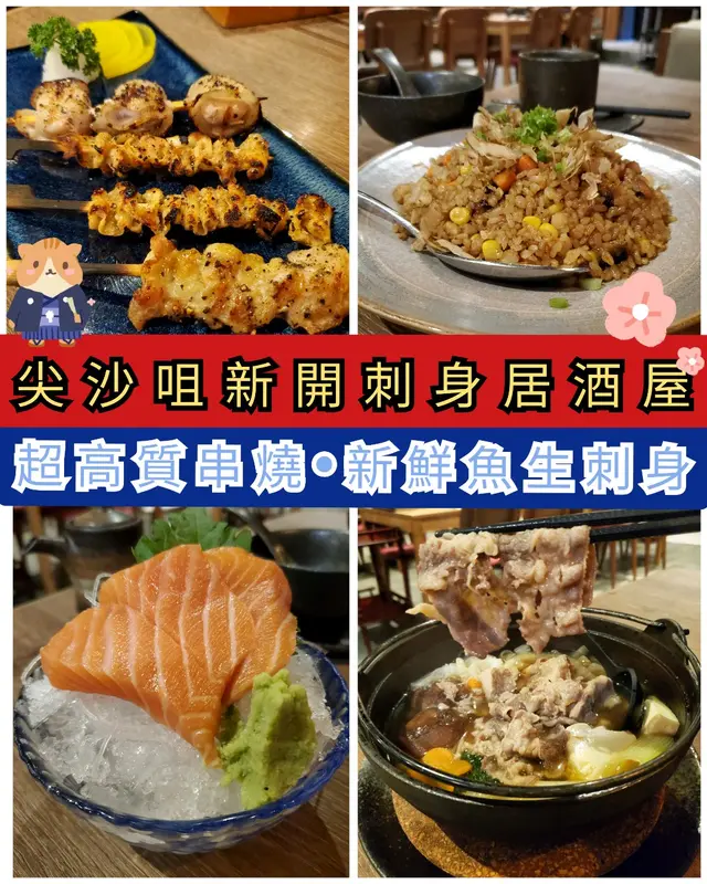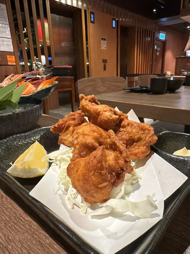 識我既朋友都知我對居酒屋係有瀝愛,上星期六朋友帶我去試新嘢。餐廳喺尖沙咀i-Square 行去三分鐘就即太子集團大廈,餐廳裝修簡單,坐佔都闊落,坐得舒舒服服,同兩個朋友邊傾計,邊啤啤談笑風生,享受一下姐妹分享。特盛刺身拼盤份量相當十足,包括有赤蝦、赤身、帆立貝、三文魚,油甘魚、北寄貝、三文魚子,而且非常新鮮,個人比較喜歡赤身厚切,又新鮮好味,性價比相當高。串燒牛舌、雞皮、月見照燒免治雞肉棒另外,去居酒酒當然一定要食串酒,香口佐酒。我們點了串燒牛舌、雞皮、月見照燒免治雞肉棒每一串都燒得恰到好處,尤其雞皮以鹽燒方式更為佐酒美味:雞皮燒得非常之脆。牛舌以厚燒不會太乾身。月見照燒免治雞肉棒一客兩串,雞肉啖啖肉,點上日本蛋皇漿油更加美味。招牌唐揚炸雞唐揚炸雞塊炸至金黃色,外層脆皮酥脆而雞肉juicy嫩滑。灑上檸檬汁增添鮮味,又是一道值得推介的佐酒小食。整體個人認為餐廳服務唔錯,待應們知道我們朋友聚會開心,都不會主動打擾,更會主動為們換碟,另外,食物都算有質素,價錢合理,好適合三四個朋友,坐個卡位,邊食邊飲暢談一晚。😊…查看更多