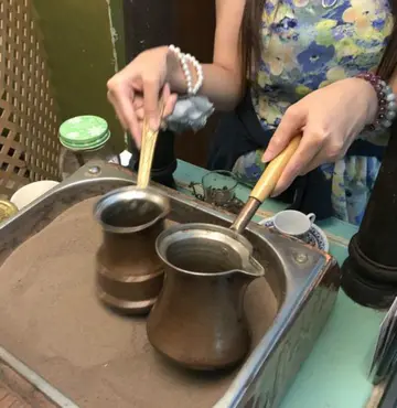 俾大家睇𠮶个外面个样真系有啲惊㗎但系上到去个环境系令人惊艳嘅,个老板定系服务员好Nice,佢会讲好多关于土耳其菜嘅知识俾我哋听,佢话其实佢系好想建立一个土耳其同香港之间嘅桥梁, 多啲人去感受土耳其嘅文化。我哋试咗佢个土耳其咖啡,佢话其实好少人会有专登呢部机,佢个原理系用啲沙嘅热力令到啲咖啡可以上到嚟,所以会有一种啲咖啡系个壶度会越来越多嘅错觉