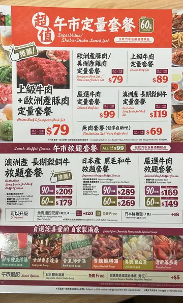 餐厅主打日式涮涮锅,采用由日本自家牧场饲养的黑毛和牛,另亦北海道四元豚,款款肉质细嫩。自助区备有多款饮料、锅物配料、炸物及雪糕等。