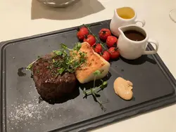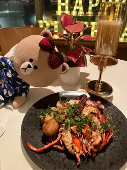 早几年来过邦衬午餐,那时好像是疫情期间,服务很周到,印象非常良好,一直都想再回头。今次回来试吓个庆祝晚餐,网上预订有75折,几抵,因适逢庆祝生日,所以预先请餐厅准备吓基本甜品写字及安排窗边坐位。响门口未入来已离远见倒准备咗大型灯光生日牌,算是惊喜心思位,抵赞。面包热辣辣很好吃。头盘系烧龙虾,煎带子,蟹饼及烧八爪鱼。我哋都觉得烧龙虾比较好味,肉质弹牙。其余则没有味道,例如带子没有带子味,八爪鱼系好大条,但没有味道,想是雪藏了很久很久?龙虾汤没有变,依然觉得好浓好味道!主菜放在一起share食,煎鳕鱼及安格斯牛柳。安格斯牛柳非常有水准,肉味丰富煎得刚刚好,有很多肉汁。鳕鱼鲜味肉质嫩滑。两道主菜做得不错。配菜有6款可以选择,我哋选嘅炒磨菇普普通通,没有特别。庆祝套餐有半磅signature 蛋糕送。入面系有4层嘅忌廉桃肉蛋糕,由于我哋太饱,所以蛋糕带走了。餐厅整体气氛没有了先前一次去的好。待应生急急赶赶,匆匆忙忙。非常切合香港人性格,但我哋本想慢慢细味。而且不知道点解餐厅入面有两枱食自助餐的客人!虽然知道现在生意难做,但也绝对不是为求填满空坐位而张隔离爆满的自助餐客人移过来,感觉气氛怪异,不伦不类!破坏了餐厅气氛!…查看更多