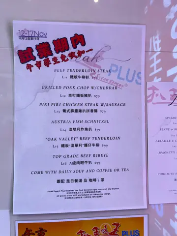 要数对上一次食扒王之王,大概是十年前还是小学生的时候吧?这个品牌是我的孩童回忆,记得小时候曾有一段时间很流行这类港式扒房。而今次为何会突然想去一试,是因为看到直至11月有个折扣优惠,计起来蛮划算,也可能是上一次在莎乐美那个不满足的经验所致,扒王之王怎也应有一定的质量保证吧:)。怎知去到的时候门外那张海报已经拿下:(