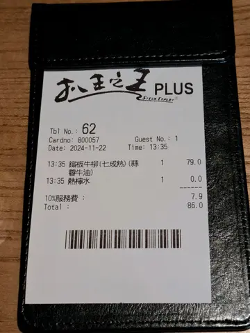 有薯菜。我是跟黑椒汁,淋下去时那种声音真的很棒。:)(这个也是我偏爱铁板的理由)我叫了五成熟,味道不错,有一些血汁,口感柔软,比较喜欢牛肉,不过猪肉也不错。:)到大人的奥华利牛柳,同样选了五成熟,可惜卖相跟味道口感不成正比,太老了。:(难为大人了。所以我都分了一些牛柳给他。以这个价钱来说,是可以接受的,不过没有再来吃的冲动。:(即使大的连锁店,不好好想办法以gimmick、水准留住顾客,日后要继续百花齐放的市场上立足未必容易。