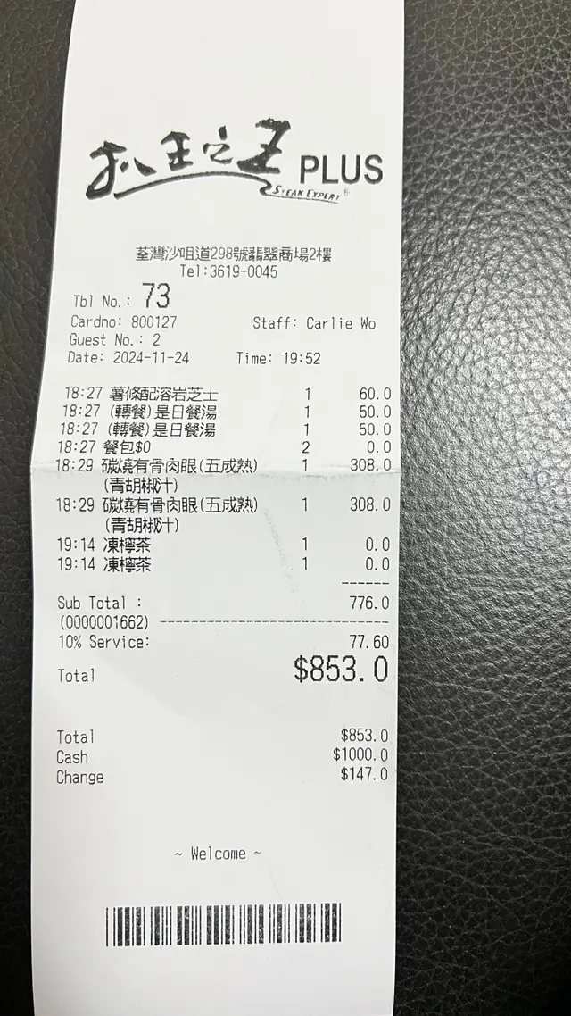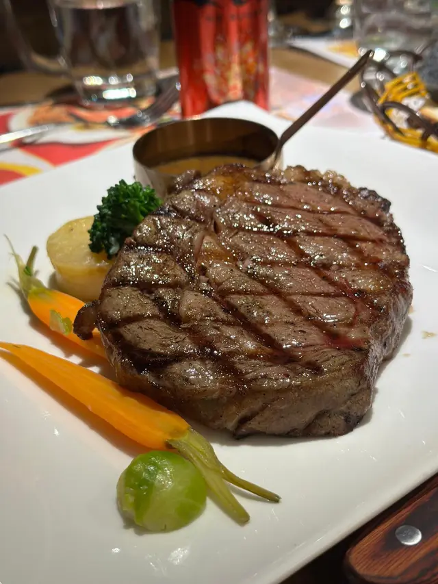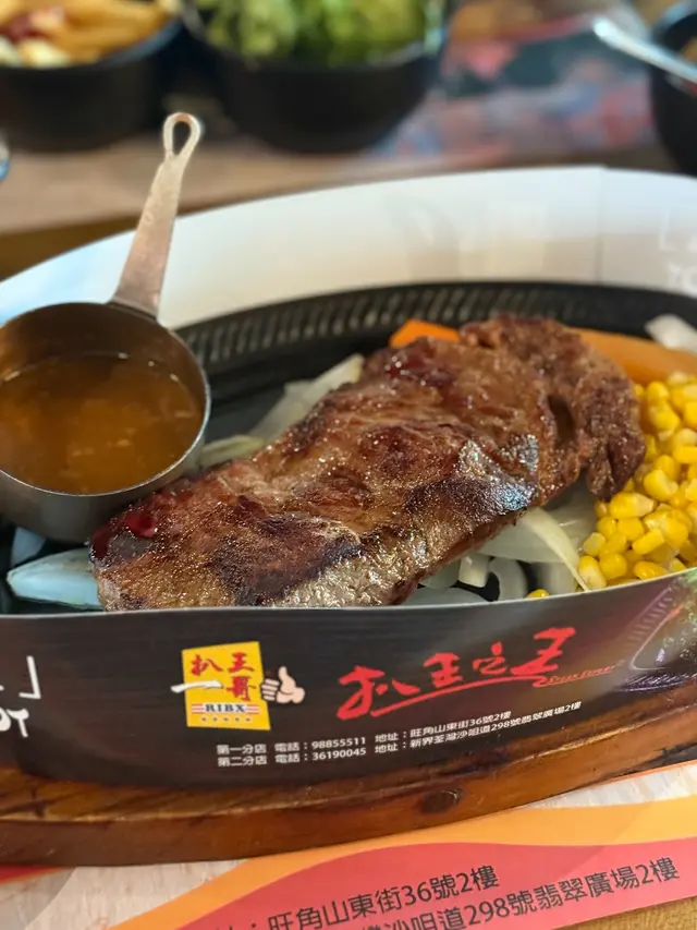 今日同朋友去咗扒王之王Plus食lunch,試咗佢哋嘅鐵板牛扒同小食,簡單同大家分享下:🥩 鐵板美國A級肉眼牛扒牛扒份量確實夠大塊,鐵板上枱仲滋滋聲。肉質算係正常水平,以呢個價錢來講都算合理。配埋黑椒汁同鐵板雜菜,整體夠飽肚。🥗 沙律 & 湯跟餐有沙律同湯,湯係自助形式,不過限每人一碗,味道正常。🍗 炸雞翼6隻 ($18)$18有6隻雞翼真係幾抵食,炸得香脆,味道唔錯,係幾好嘅小食選擇。整體來講,食物水準還好,但勝在份量夠大,價錢合理。如果想平平地食個大份牛扒,呢度都係一個選擇。環境同服務都係一般連鎖餐廳水平,適合想簡單食個飯嘅時候去。…查看更多
