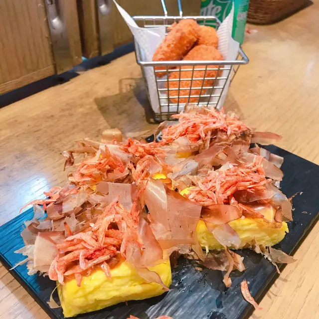 今日放假同男朋友去左西環行下,行到去第三街見到哩間小店,見店名好特別🤩同男朋友又肚餓喎,menu又有我鐘意食既玉子燒,一於入去試下先,裏面原來好細間,得三張枱,我地岩岩好有兩嗰位係門口位置,不過冷氣好微弱😫😫😫不過座底左就算啦我地嗌「自家製日式叉燒玉子」「鰻魚玉子燒」「炸雞翼」「芝士炸球」「燒雞扒冷麵配糖心糖」,由於得一個女店員整野食,一腳踢,野食等左好耐「芝士炸球」「炸雞翼」一齊上枱,炸得比較燶,芝士球無嘜芝士味,好唔開心呀,wasabi炸雞翼又係無wasabi味😫😫😫「自家製日式叉燒玉子」塊叉燒完全唔似日式叉燒,似係蠟味既味道,而嗰玉子燒一啲都唔熱,仲要好老好老,我諗我整既仲好食囉「鰻魚玉子燒」又係好奇怪囉,我對玉子燒係有啲要求,所以真心失望🤣🤣🤣「燒雞扒冷麵配糖心糖」較為好食,冷麵配芝麻醬,燒雞扒係串燒既味道,糖心蛋半隻,不過就唔糖心囉😫😫😫查看更多