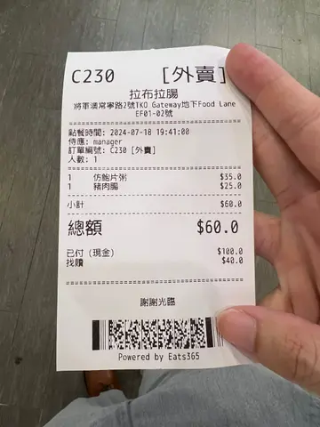 外卖平台见到呢间:拉布拉肠(厚得街市)点左2个:滋味套餐(1)- 猪肉鸡蛋肠-《煎》粟米猪肉饺- 纯豆浆肠粉猪肉太肥,鸡蛋🥚够,肠粉唔太厚唔算薄但够滑饺子煎得够脆,味道唔错豆浆:维他牌,笑左😁—————————————————————滋味套餐(2)- 翡翠鲜虾肠-《汤》粟米猪肉饺- 纯豆浆虾够多,够爽口,肠粉唔太厚唔算薄但够滑汤饺汤底有惊喜,猪过汤仲有粒杞子,有诚意豆浆:维他牌,笑左😁可以Encore