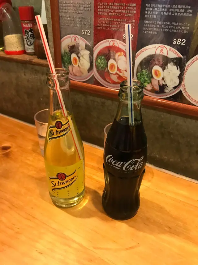 好耐冇食拉麵,經過呢條街見到你間外型好有日本風格嘅拉麵店就去睇下一打開道門就覺得自己好似去咗日本咁,所有裝修同埋裝飾令到我停留左係到唔願意走呢度啲汽水係支裝