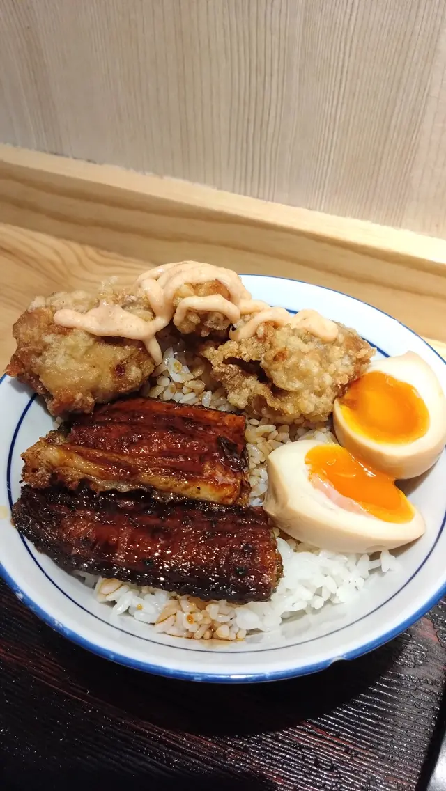 糖心蛋火候恰到好處!明太子炸雞鰻魚丼 $89 (連麵豉湯)每款配料都是熱的,可見製作認真,絕不馬虎!