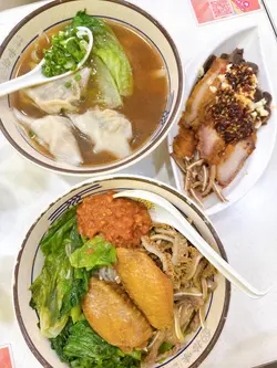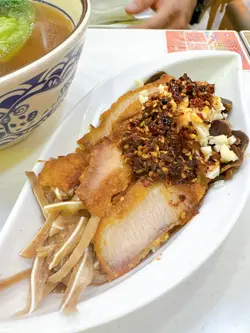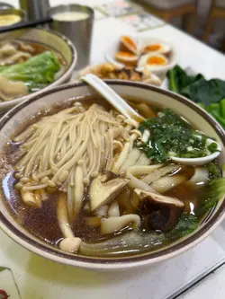 住附近嘅朋友极力推荐呢间山西面馆,话佢哋嘅刀削面同卤水都好出色,几抵食,今日路过黎试下~蒜泥熏蹄刀削面一上枱就闻到浓浓蒜香,面条烟韧有咬口。熏蹄切得薄身,爽口弹牙,同蒜泥酱出奇地夹,食落完全唔腻😍另一碗麻辣大肠牛肚刀削面更加惊喜,汤底清清地,卤水配菜另上,大肠同牛筋腩炆得软淋入味,清理得干净,吸收哂卤汁精华👍另外加咗客红油抄手,用嘅系上海云吞底,皮薄馅多🥟红油香而不燥,微辣中带住少少醋香,捞匀之后食真系好开胃🤤两个人食到好饱都系百零蚊,性价比高!想试真系要早少少嚟,晏昼好快就坐满人~