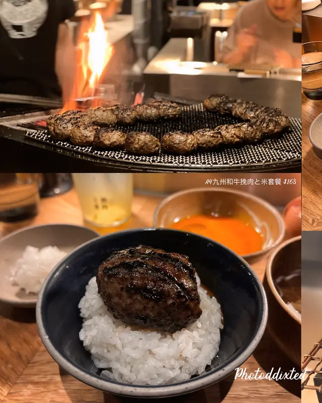 挽肉と米 (中環) @hikiniku.to.come_hongkong 📍:香港中環金融街8號國際金融中心商場4樓4011號舖🚗:香港地鐵B2出口 步行8分鐘📞:+852 2640-1868💲:~HKD250/head for dinnerFood quality✔️:A4九州和牛挽肉と米套餐、兔治牛肉薯仔沙律👌🏼:菠蘿熱情果果疏梳打總結:😋開業至今仍然是預約困難嘅日式漢堡過江龍 依舊採用網上預約制 餐牌好簡單就一昧主打和牛漢堡 好好食🤤必定要試😋ifc店限定有A4九州和牛套餐 套餐包括:現烤A4九州和牛漢堡扒三件、無限續添現煮白飯、味噌湯同雞蛋 食得好滿足👍🏼😋三件漢堡都係即燒 仲要燒得啱啱好 咬入口充滿肉汁 仲有生雞蛋🥚同各種醬汁蘸 個人覺得青唐辛子鹽漬檸檬> 特製麻辣粉 >椒麻醬 >香炸蒜碎 >生醬油> 油漬青唐辛子 😋蘿蔔泥同自家柚子醋就係食到咁上下好膩 夾埋食中和下很好😋免治牛肉薯仔🥔沙律又係正到不得了 平平淡淡但忍唔住食食下就好快清哂🤔雖然係炭火燒烤漢堡排 但通風做得頗好 設計都係所有客圍圈圈睇住師父係中間燒 所以大家都睇到過程 可以打卡 而且有點距離 啲煙唔會飄到過嚟 食完✅都唔會成身烤味😨一定要預約 仲要較哂鬧鐘⏰都未必預約到 繁忙時段要啲運氣先得😨菠蘿熱情果果疏梳打幾好飲 但塊葉新鮮啲會好睇啲 睇落有點唔開胃🙈