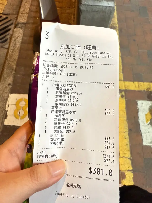 捌加廿陸天婦羅居酒屋 (旺角) 网址: https://s.openrice.com/QrLS0opKC00 地址: 香港旺角窩打老道31-39號翠園大廈一期地下33A號舖 电话: +852 90835149