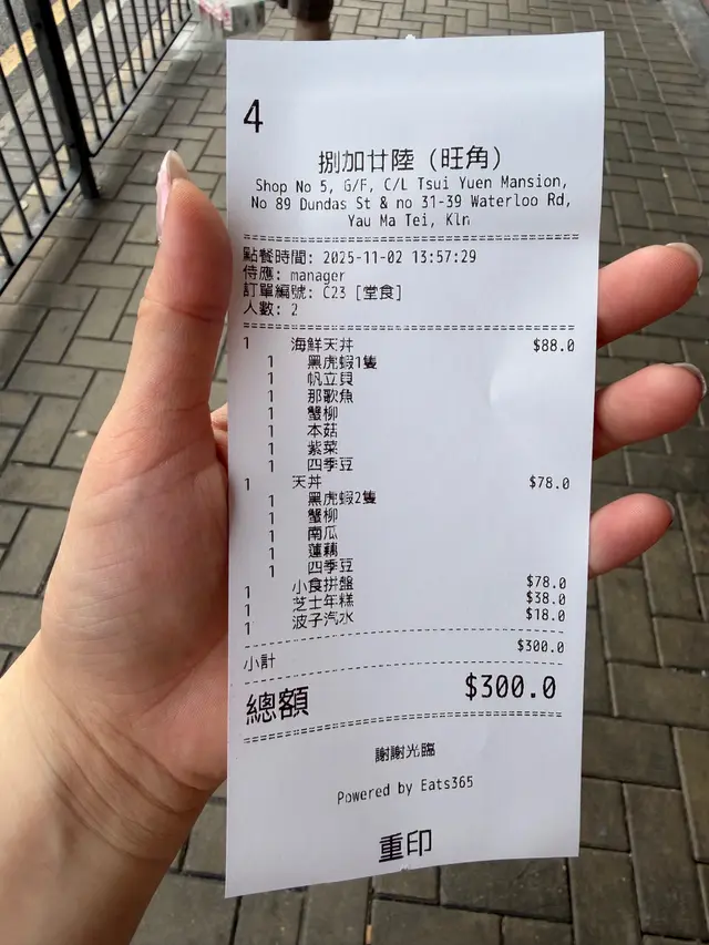 捌加廿陸天婦羅居酒屋 (旺角) 网址: https://s.openrice.com/QrLS0opKC00 地址: 香港旺角窩打老道31-39號翠園大廈一期地下33A號舖 电话: +852 90835149