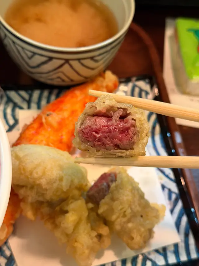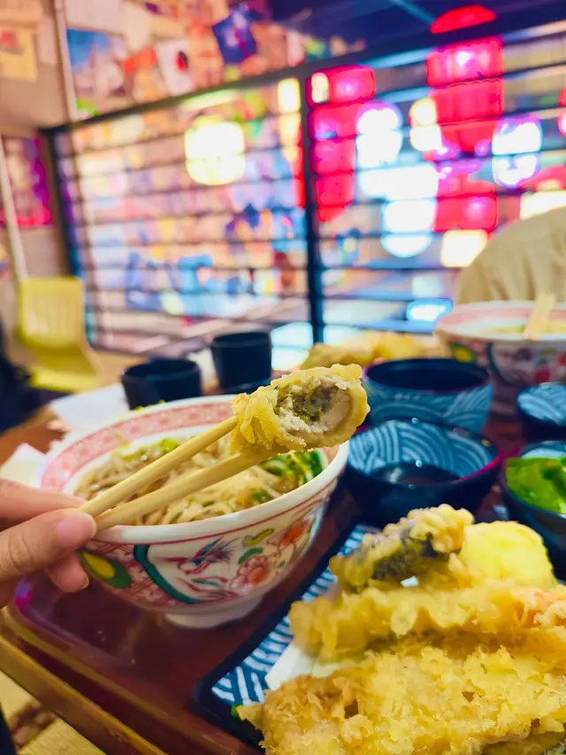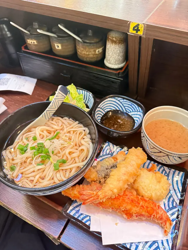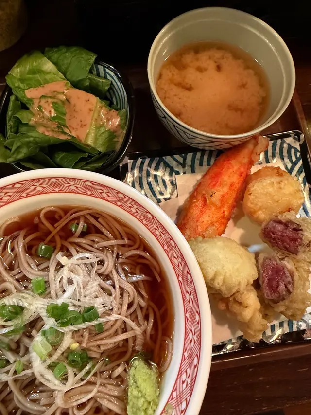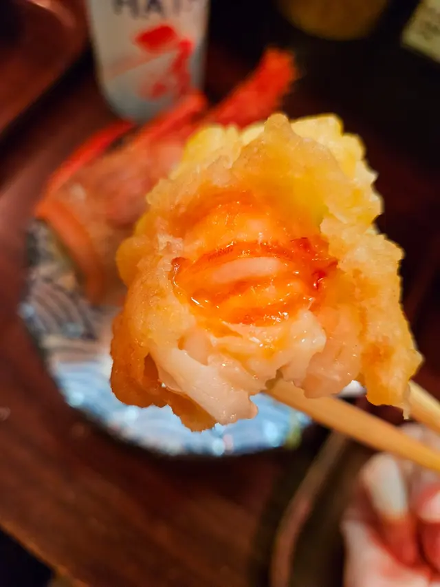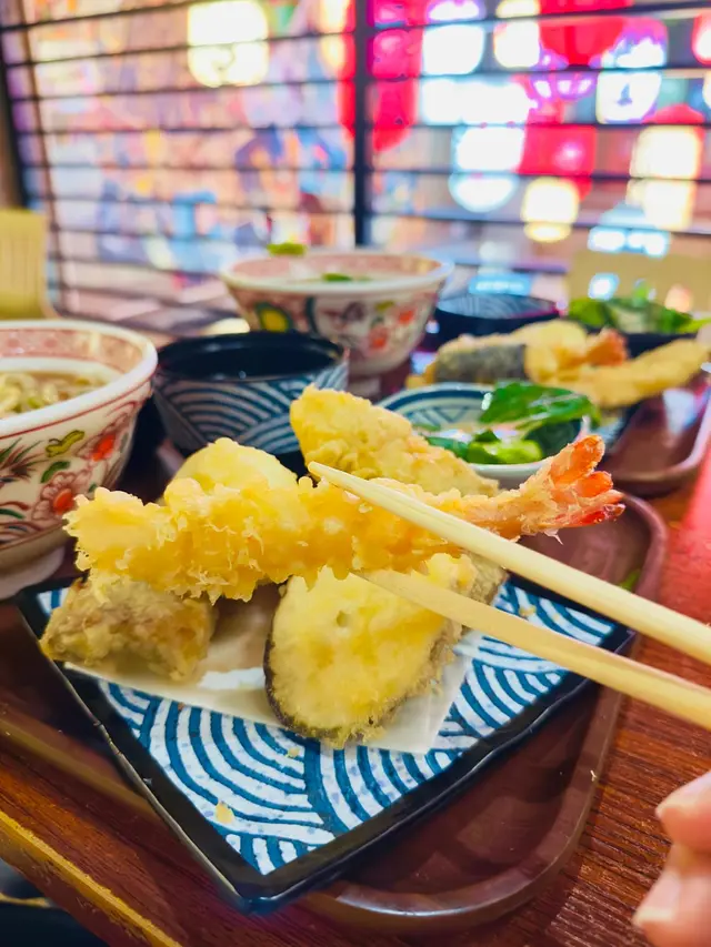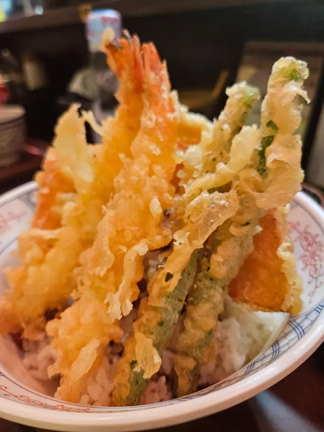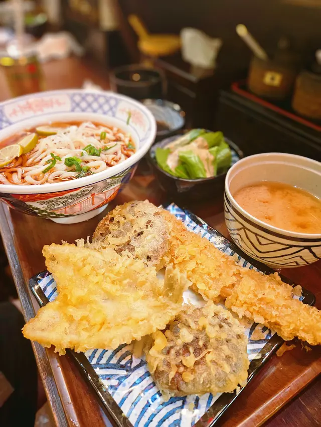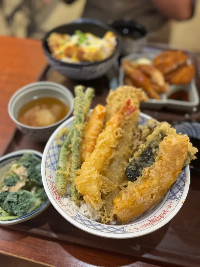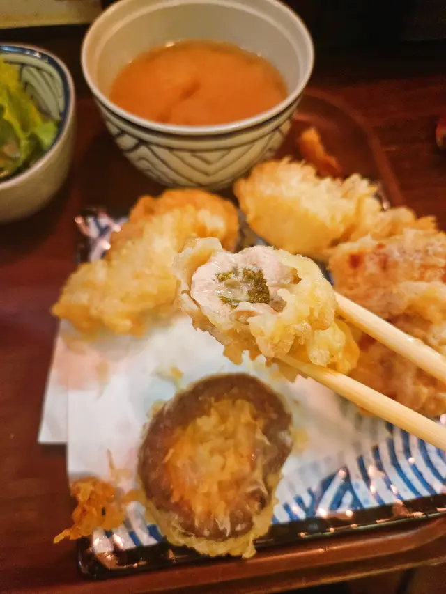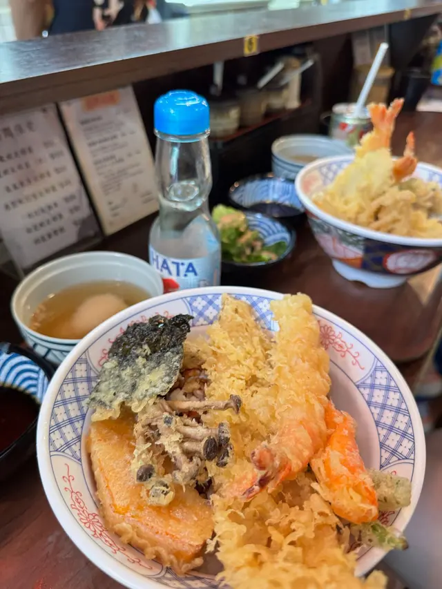 雖然當日無緣品嚐招牌的活龍蝦天婦羅,但這家充滿和風裝潢的小店,仍以出色的炸物留下深刻印象。環境舒適,樓上雅座更顯愜意,且價格親民,絕對是物超所值之選。小食拼盤 $78拼盤集結多款炸物,各有特色。雞軟骨香脆爽口,墨魚粒彈牙鮮美,炸雞鎚則肉質嫩滑又多汁,整體表現相當出色。原隻軟殼蟹天婦羅 $68軟殼蟹炸得外層酥脆而不油膩,內裡肉質鮮甜,口感層次豐富。蒲燒鰻魚丼 $88鰻魚厚身肥美無骨,鋪滿濃郁的蒲燒醬汁,與白飯完美融合,每一口都讓人滿足不已。自選天婦羅定食 $112定食附湯與沙律,更可自由搭配湯底、配料及主食,打造個人專屬組合,體驗極佳。這次選了蕎麥麵配海老味噌湯底,麵條順滑,湯頭濃郁,再灑上櫻花蝦,香氣十足。配料方面精心自選左五款。黑虎蝦:爽口彈牙,鮮味突出,必試之選珍寶蟹柳:粗身飽滿,一絲絲蟹肉口感十足鮮帶子:大粒軟彈,鮮甜味美廣島蠔:外脆內軟,蠔味濃郁南瓜:香甜可口天婦羅整體水準甚高,炸漿薄脆不厚,完美鎖住食材原味。淋上天婦羅汁,鹹甜交融,更添風味。…查看更多