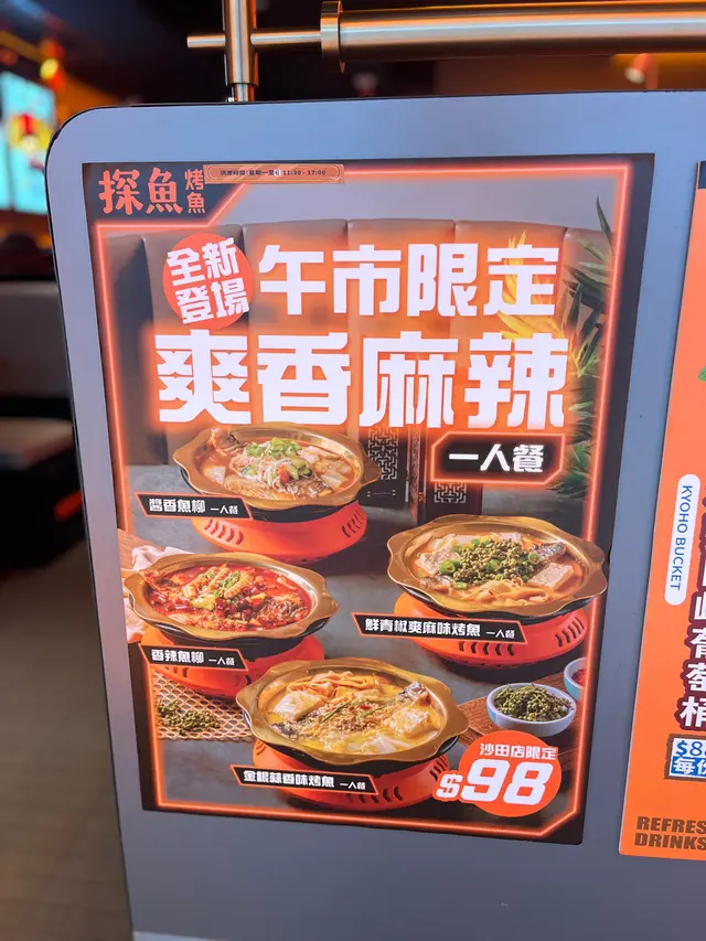 沙田新城市廣場的探魚是我光顧多次的烤魚店,午市一人餐的選擇十分誘人,價格也相當實惠。香辣味烤魚的午餐選擇,僅需98元,湯底香辣,半條鱸魚鮮嫩,配菜豐富,真是性價比高的美味。此外,午茶時段的一人餐拉麵更是超值,只需58元,讓人驚喜。藤椒湯鱸魚片拉麵拉麵湯底濃厚,量豐富,無論是獨自享用還是與朋友分享,都能感受到滿滿的幸福。兩份烤魚都完全冇骨。在這裡還有其他美味小吃,比如爆漿鴛鴦滋粑,搭清爽的蒜泥青瓜和香烤花菜,讓整頓餐點更加多樣化。而低糖五穀米漿和黃金組合的蔬菜拼盤更是健康之選。午市和下午茶的美食,不僅讓人滿足,還讓人感受到物超所值的快樂。原本免費的冰粉也沒有空間吃了。查看更多