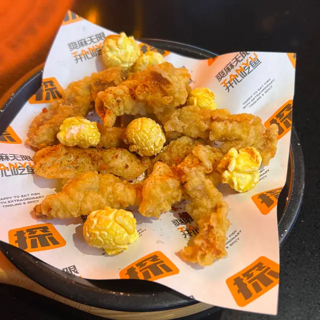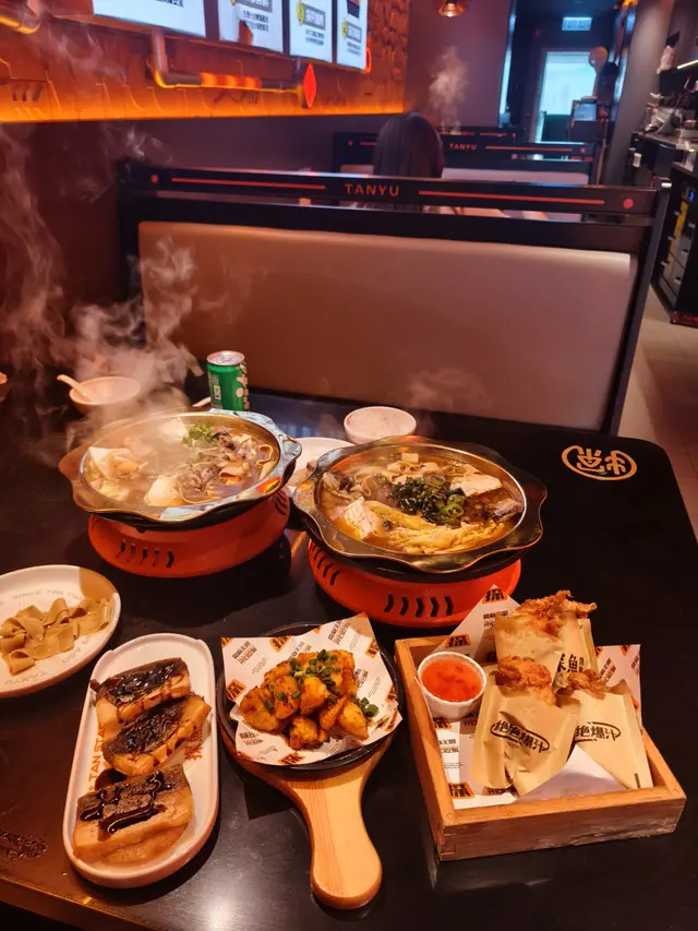 真係好鍾意食探魚,忍唔住又嚟食!我哋叫咗兩個set:鮮青椒爽麻味烤魚一人餐(小麻小辣):烤魚完全冇骨好大條,而且魚肉好滑,啖啖肉,加埋黑椒味湯底,帶點麻辣,娃娃菜,腐皮,好入味😗小酥肉:剛剛炸起,炸粉少,好鬆化😎配無糖可樂酸菜味烤魚一人餐:海陸空飽飽燒天團,少辣: 有魷魚鬚、牛肋條、掌中寶,魷魚鬚煙靭好食,牛肋條肌肉唔會好硬好入味,加埋辣粉,超好食,雞軟骨好脆口,加埋醃料,超正!咁香烤花菜:有椒鹽味,比較乾身,唔會太鹹,算新穎爆炒香辣牛蛙鍋小辣:個鍋都好大,牛蛙都唔少,好入味😎紅椒青椒、西蘭花、蓮藕好爽海陸空把把小天團:有魷魚鬚、牛肉串同掌中寶各5串,共15串,好岩一大班朋友食,即叫即燒,好香好野味!一定要試查看更多