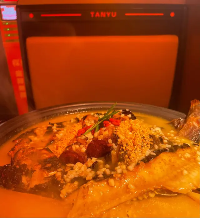 喺深圳已經食過探魚,已經覺得佢非常惹味。喺呢度我食過一次晚市都覺得唔錯幾抵食,今次經開見到佢有午市套餐,諗都冇諗就試食咗啦。「午市限定一人餐」$98,我唔係好食得辣,所以揀咗醬香我已經味套餐,跟一碗白飯,同埋任食嘅冰粉。我覺得醬味好好味,而且佢嘅魚都份量係正常,再配上蔬菜同埋豆皮,最後浸啲醬真係十分惹味,我都幾鍾意食冰粉,但呢一個午市限定一人餐份量實在太豐富,我淨係食咗一碗冰粉已經超級飽。最後佢有得飲菊花茶吓火,好貼心。查看更多