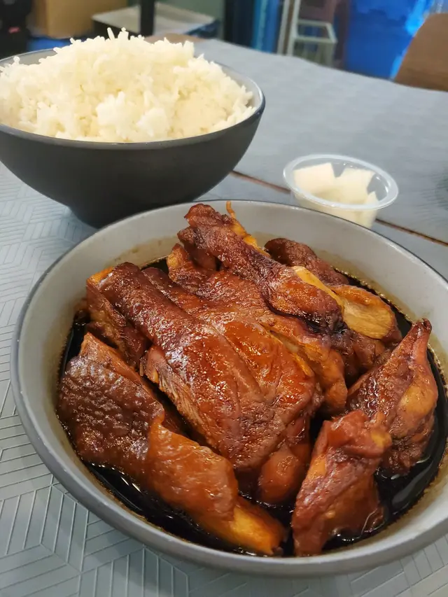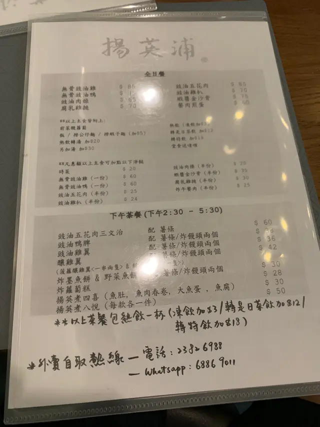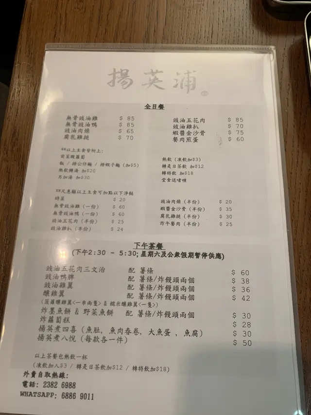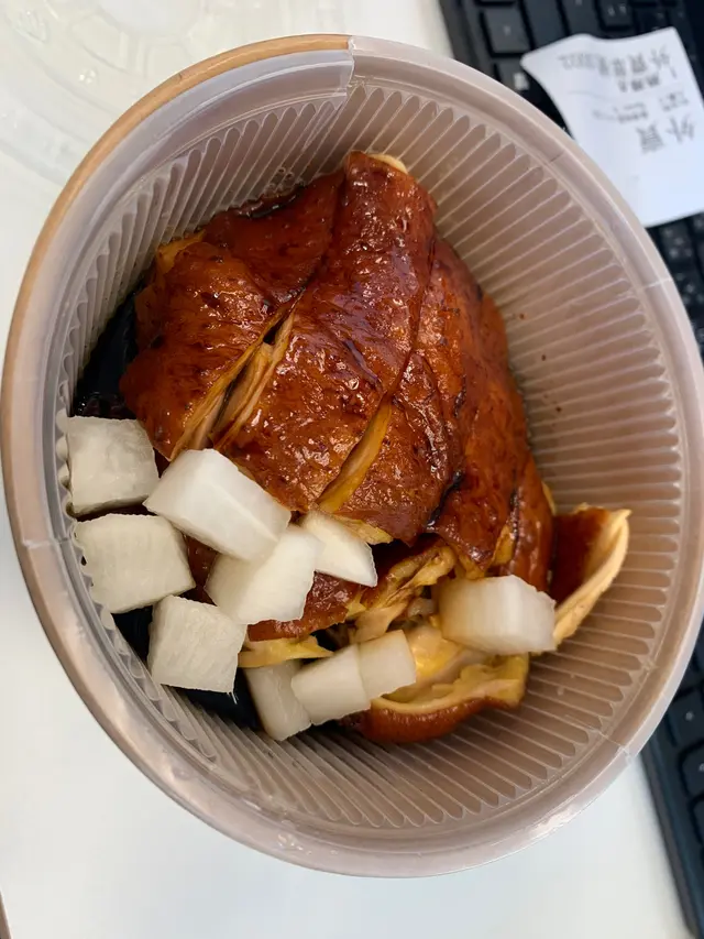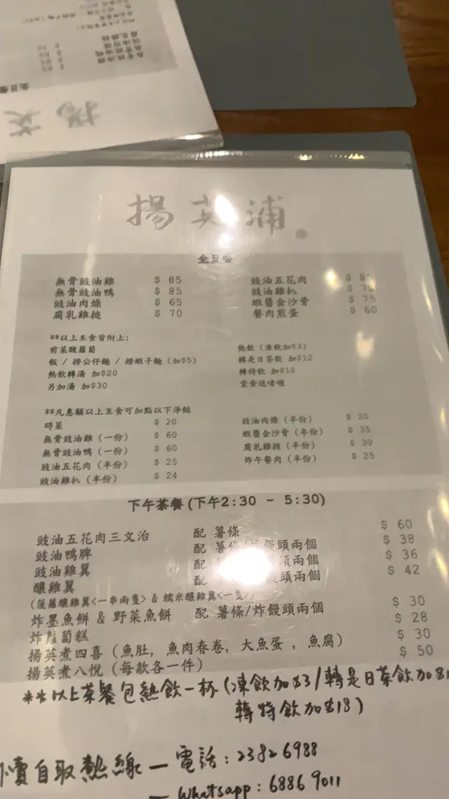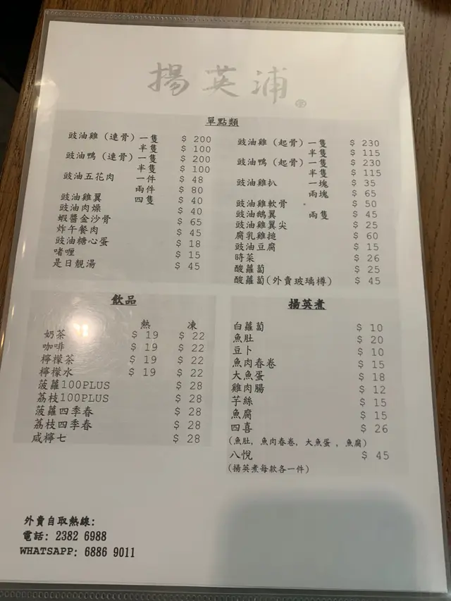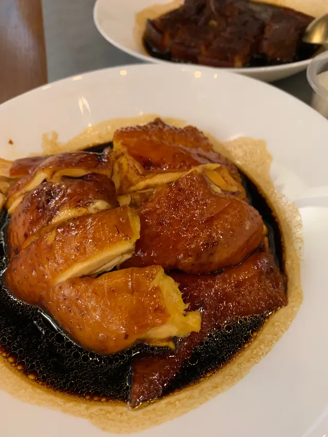 揚英浦 (English name: Yeung Ying Pou) was a shop that was located in Wanchai. A coworker had told me it was one of the best soy sauce she's ever had. A few coworkers also told me the same thing. But then it closed before I could give it a try. But then a coworker who lived in the Kwun Tong area told that it had relocated here! I made a note of it and on one day, boyfriend and I went to find it.Located in a factory industrial buidling, it was a bit of a find. But there it was! It's not very big as it's mostly geared for take away. However, they do have a few seats available along the wall. We decided to dine in.Menu is in Chinese only. There is no English and no 10% service charge. But basically, they serve soy sauce chicken in various parts along with rice and a hot drink.They also have new items no on the menu.We had a quarter soy sauce chicken set ($70). It came with a very big bowl of rice and a hot drink. The chicken was amazing. Dark in color and full of flavor. The chicken meat was moist and tender. It was also boneless.It comes with a small cup of pickled daikon. Very crunchy and not too sour but just enough to refresh the palate.For $5, you can change the rice to noodles. I decided to do that because I knew I couldn't finish all the rice and I hate wasting food. You get a choice of noodles. I chose egg noodles. Pretty good and springy. A generous amount of soy sauce to ensure it's not too dry.For $15, you can also change your hot drink to a daily Chinese double boiled soup. I decided to do that because I didn't want a hot drink. The soup of the day was chicken feet with black garlic and corn. This was served in a cup and it was all soup! None of the ingredients used to make the soup. I love that! It gives you more soup to drink as the other stuff just takes up space and I never eat that stuff anyways. The soup was very good. Rich and savory sweet. A good bowl of soup.Food was very good. Definitely one of the best soy sauce chicken I've had in the city. Service was decent enough. As most people do take away, it was quiet. Will be back.…查看更多