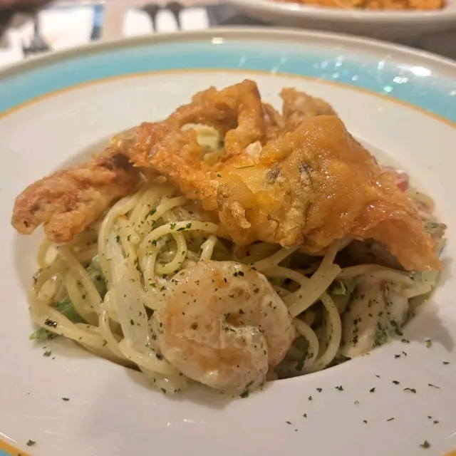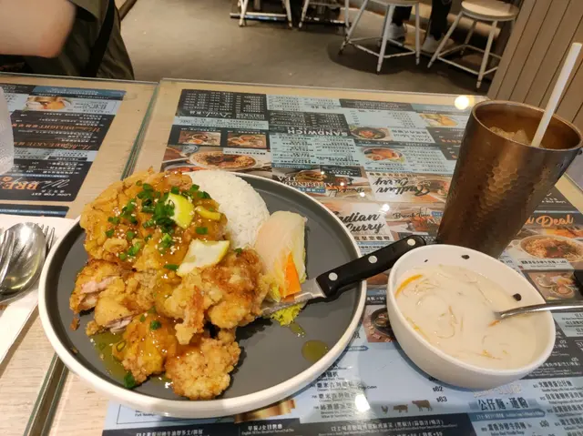 食物沙漠界嘢食質素嚟講係OK確實係值得一試嘅西餐(快餐)位置有少少偏僻 喺新港城第三期好就好在不用溚雨但唔係住呢區 應該冇咁容易搵到先講食物質素 都食過好幾次 係會再返嚟食嘅舖頭 食咗個青黃醬大蝦軟殼蟹意粉如果鍾意食芝士嘅 會好鍾意個醬大蝦都俾到有六七隻 美中不足就係軟殼蟹得個半隻如果能夠全隻就更加完美另外鐵板烤牛柳配紅酒燒汁整體OK 不過不失 份量足夠 絕對夠飽環境燈光尚算舒服 喺張凳冇背靠同硬咗少少八點幾嚟食不用排隊等位不過員工服務態度好一般 年紀係後生嘅 冇乜笑容 但又未去到差 感覺少少西口西面 唔想講咁多嘢 快啲落完 快啲食完 快啲走嘅感覺所以重點Focus喺返食物質素上其他方面不要抱太大期望…查看更多